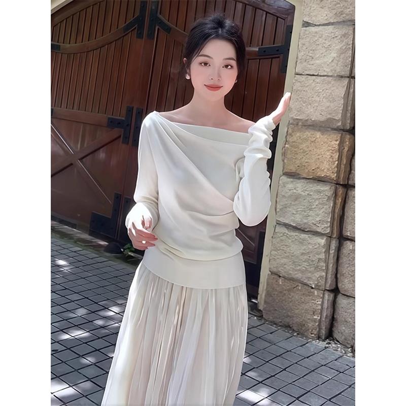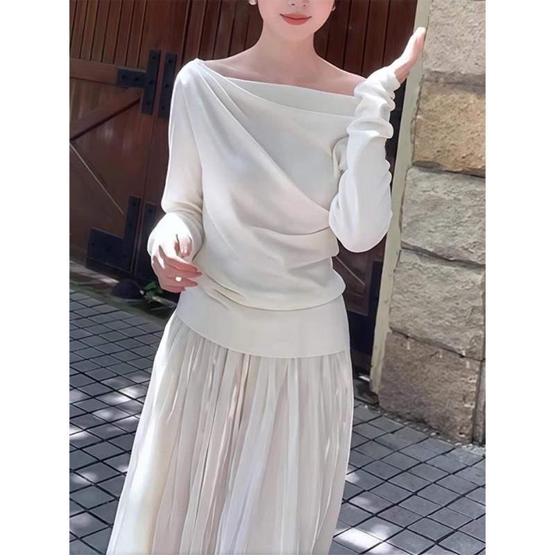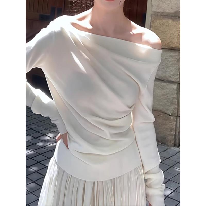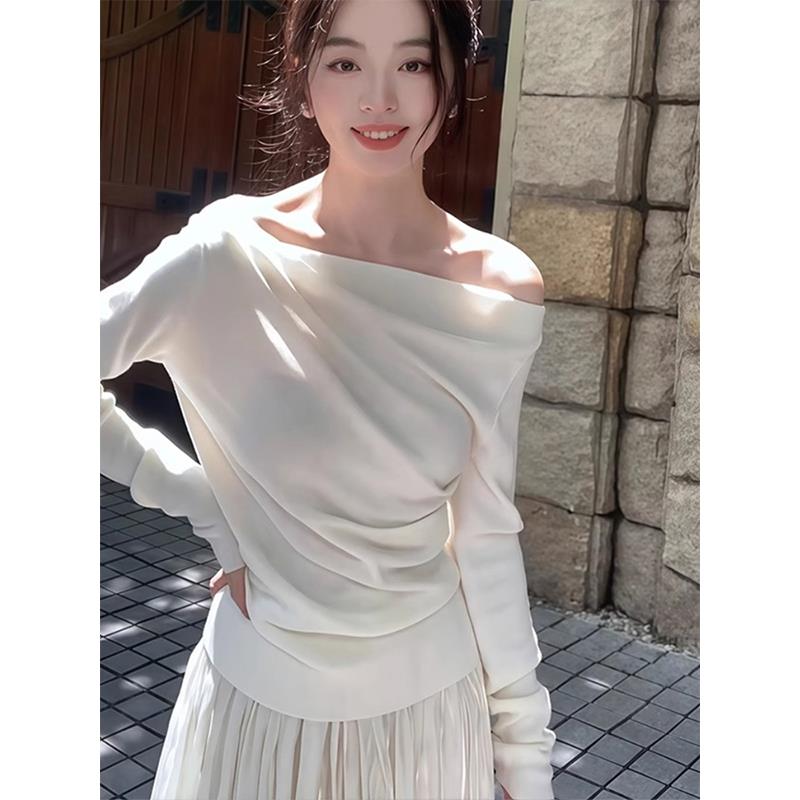欲辣妹内搭显瘦T恤上1009u 女2025新款 秋冬白色荡领针织长袖 打底衫