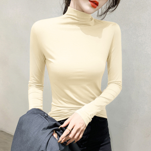 上衣 紧身洋气加绒加厚长袖 黑色莫代尔半高领打底衫 女内搭秋冬新款
