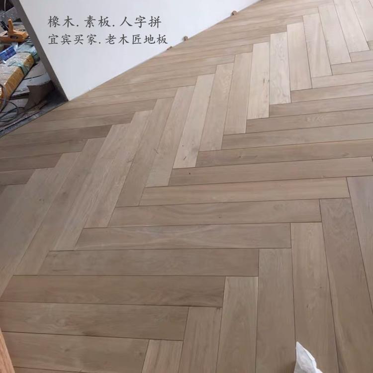 优环保 工装 橡木纯全实木素板原木旧翻新地板人字拼日式 淡色家装