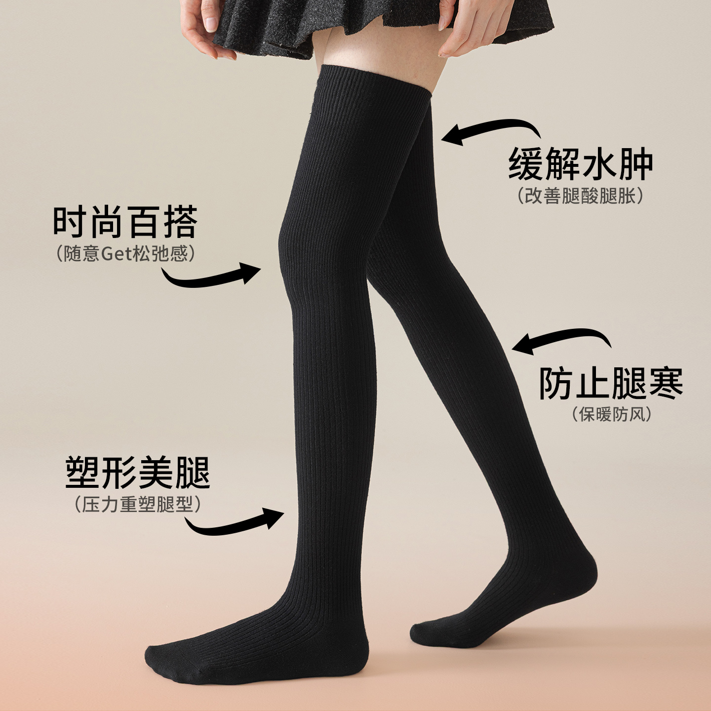 压力小腿袜女秋冬强压显瘦腿jk袜子黑色半截过膝中高筒韩版 长筒袜