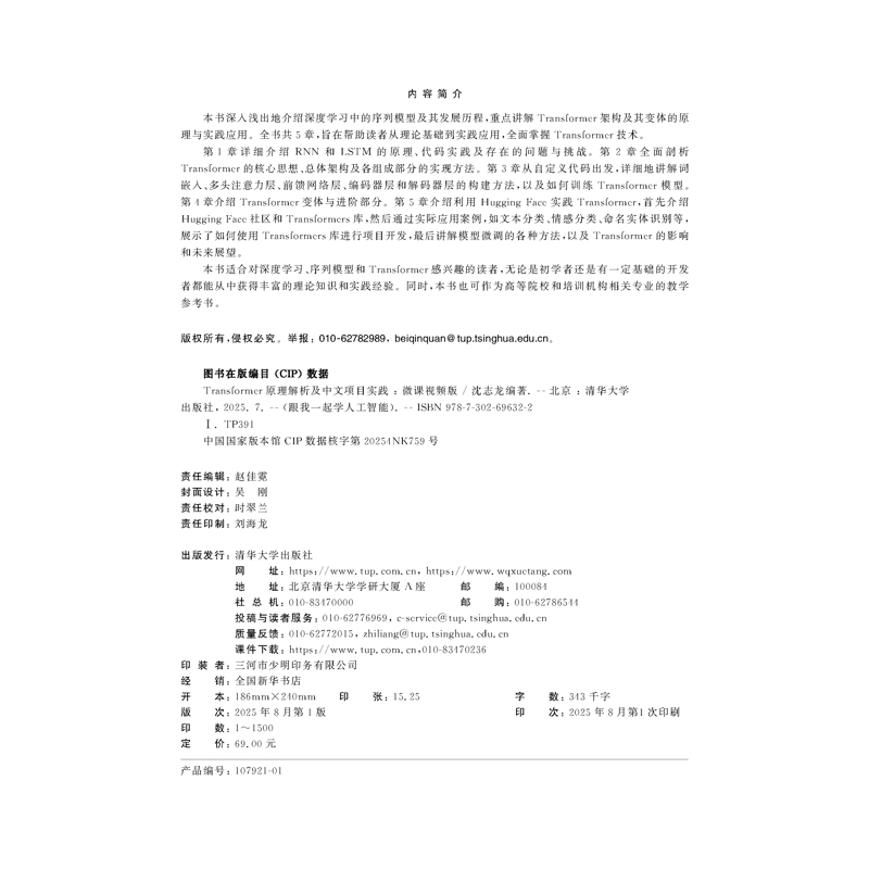 沈志龙计算机控制仿真与人工智能 跟我一起学人工智能 Transformer原理解析及中文项目实践 微课视频版