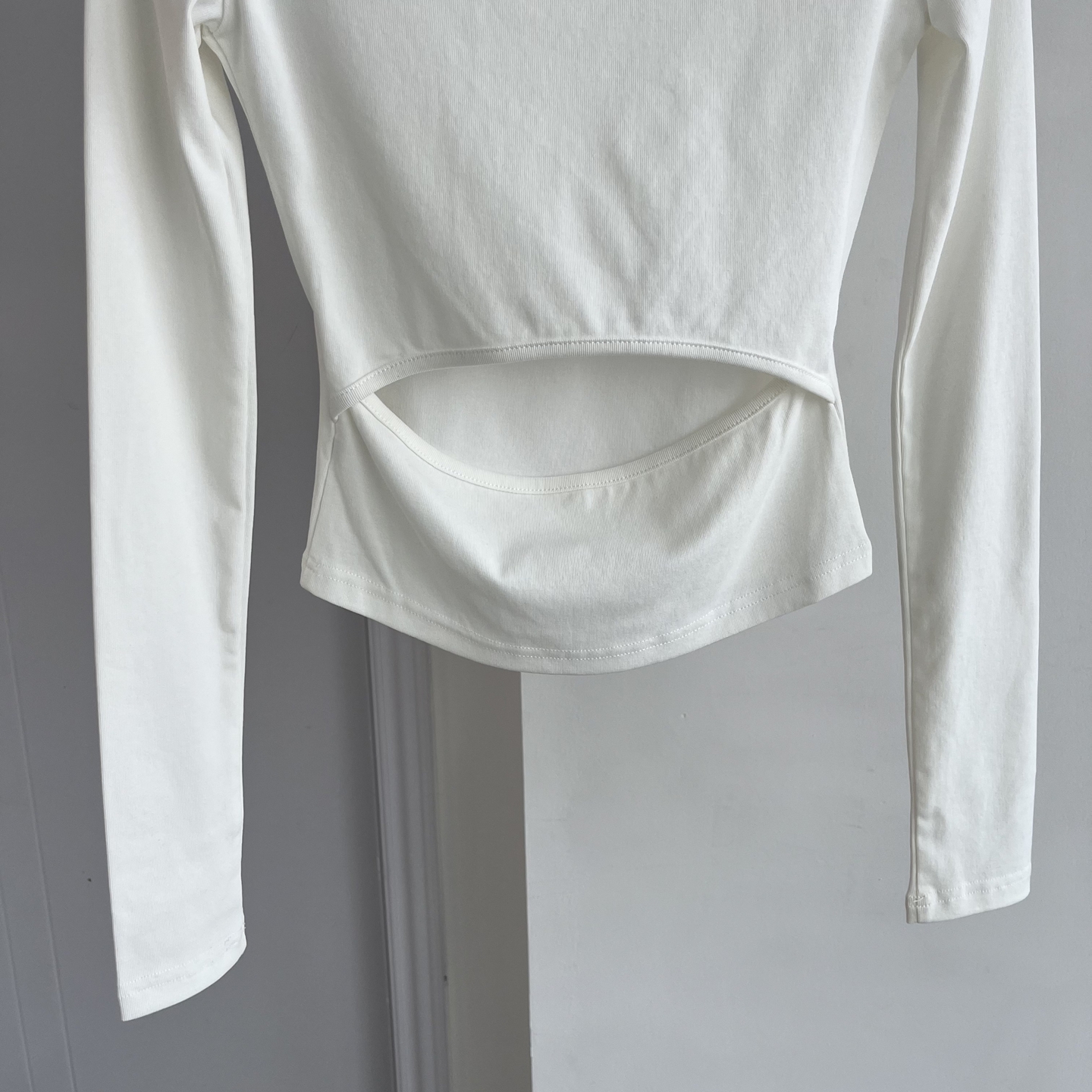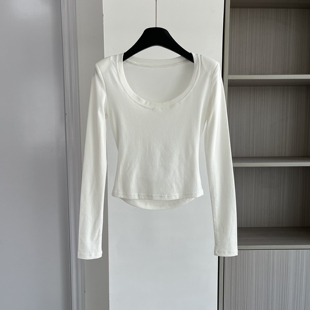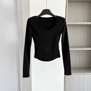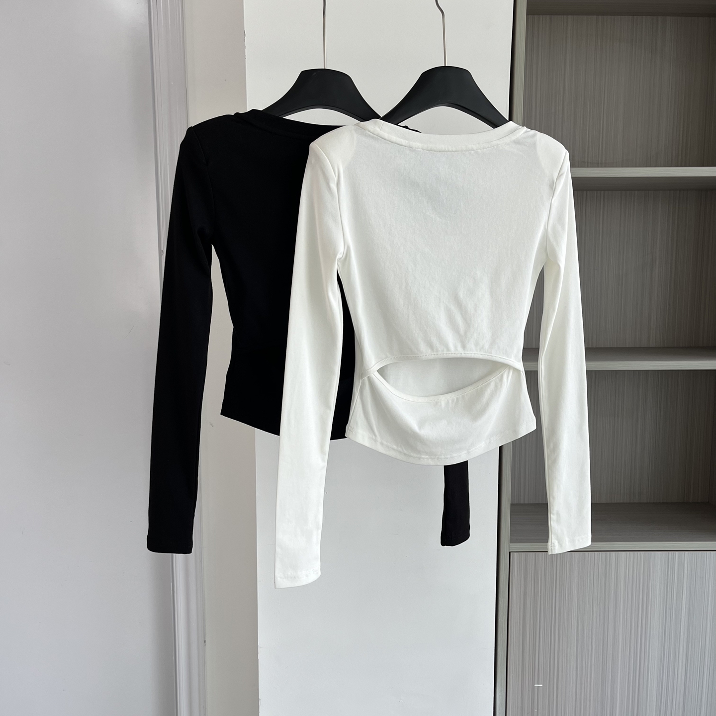 时尚 新款 镂空圆领长袖 T恤女修身 上衣 法式 显瘦打底衫 潮牌2025秋季