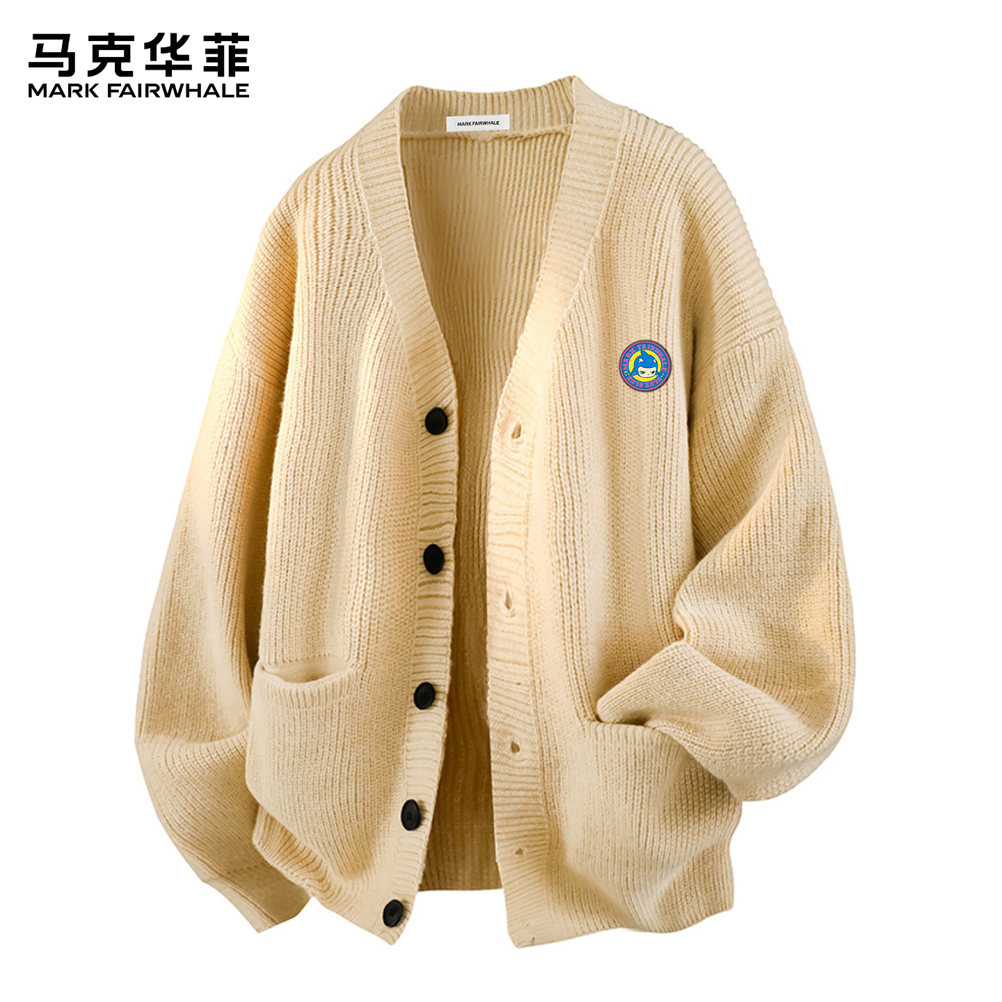 新款 毛衫 彩扣刺绣开衫 休闲宽松针织衫 毛衣男时尚 三福2025秋冬季