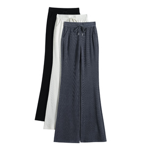 女春秋新款 休闲直筒慵懒松弛感裤 高腰垂感窄版 裤 子 西装 黑色阔腿裤