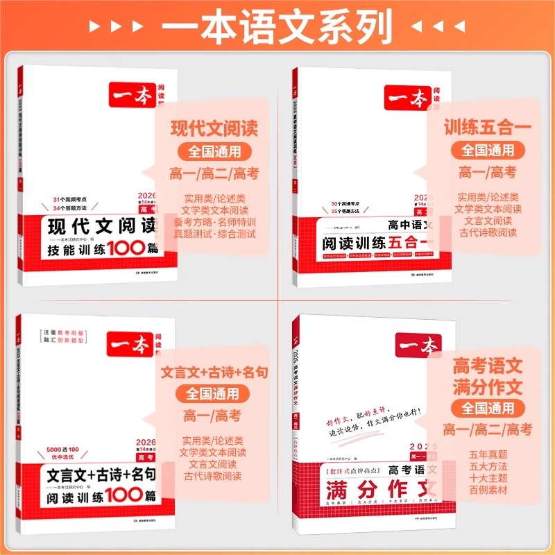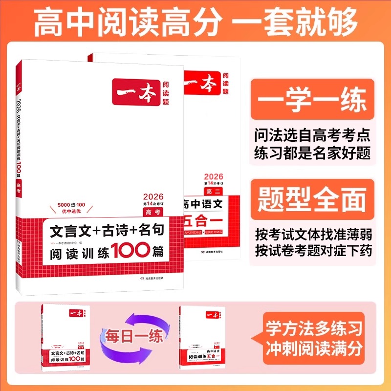 2026版 古诗阅读训练高一高二高三高考语言文字课外阅读专项训练组合书 一本高中语文阅读训练五合一现代文阅读技能训练100篇文言文