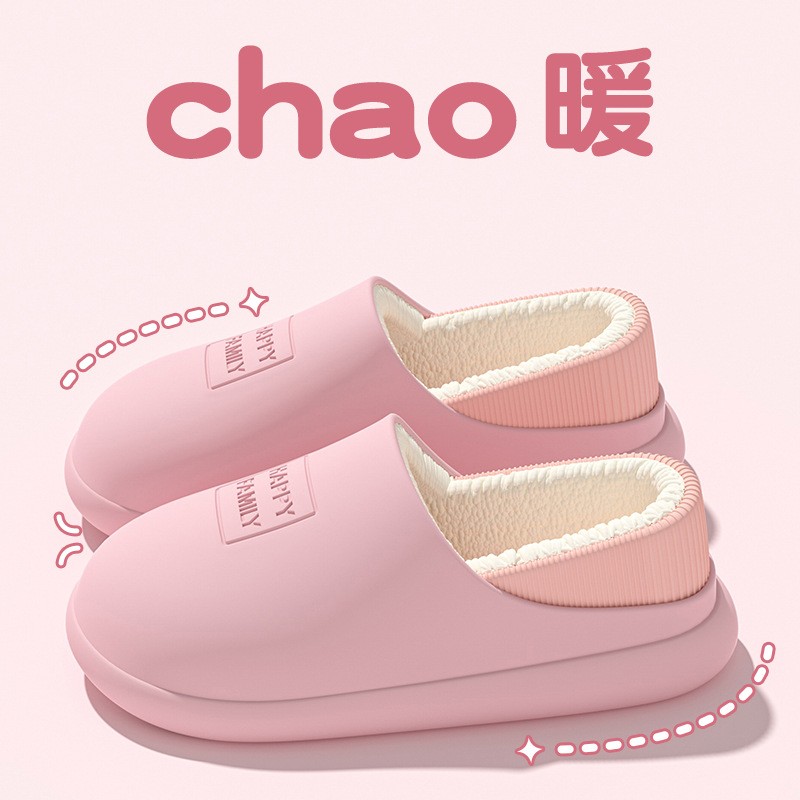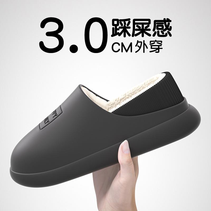 室内居家防水外穿毛绒保暖情侣棉鞋 2025新款 男 女士冬季 包跟棉拖鞋