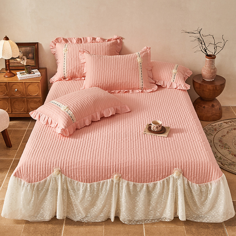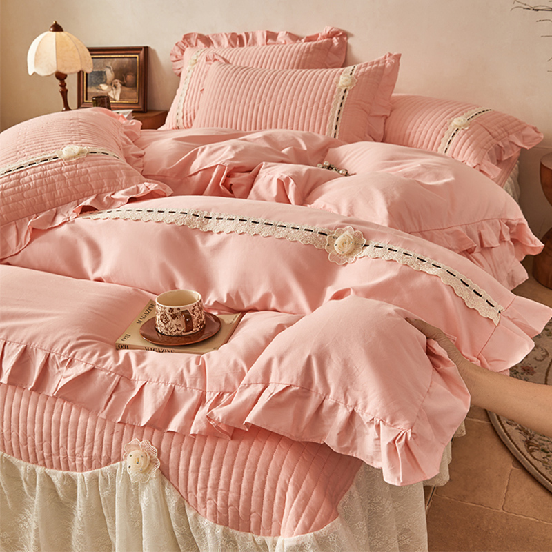 韩版 床罩高级感花边被套纯棉床盖带裙边新 公主风全棉四件套床裙款