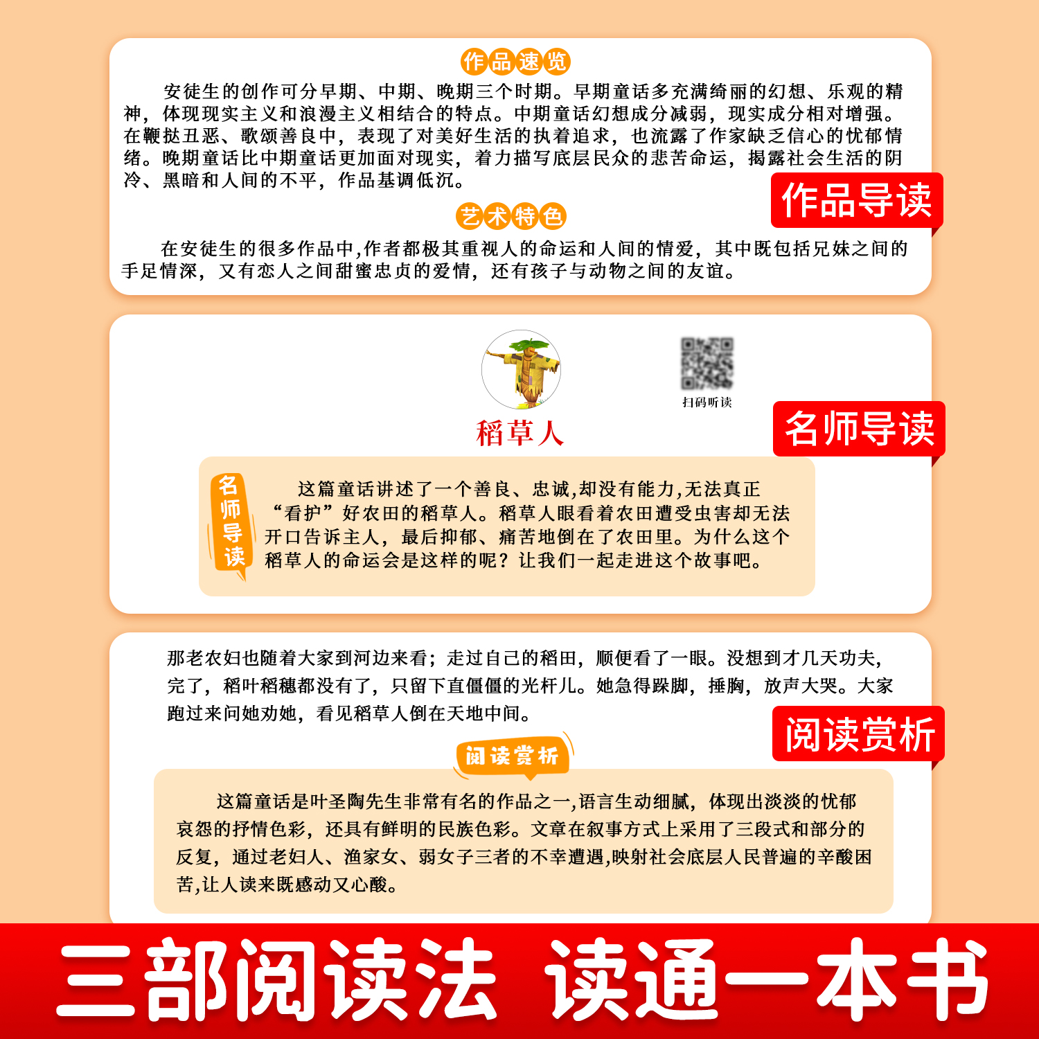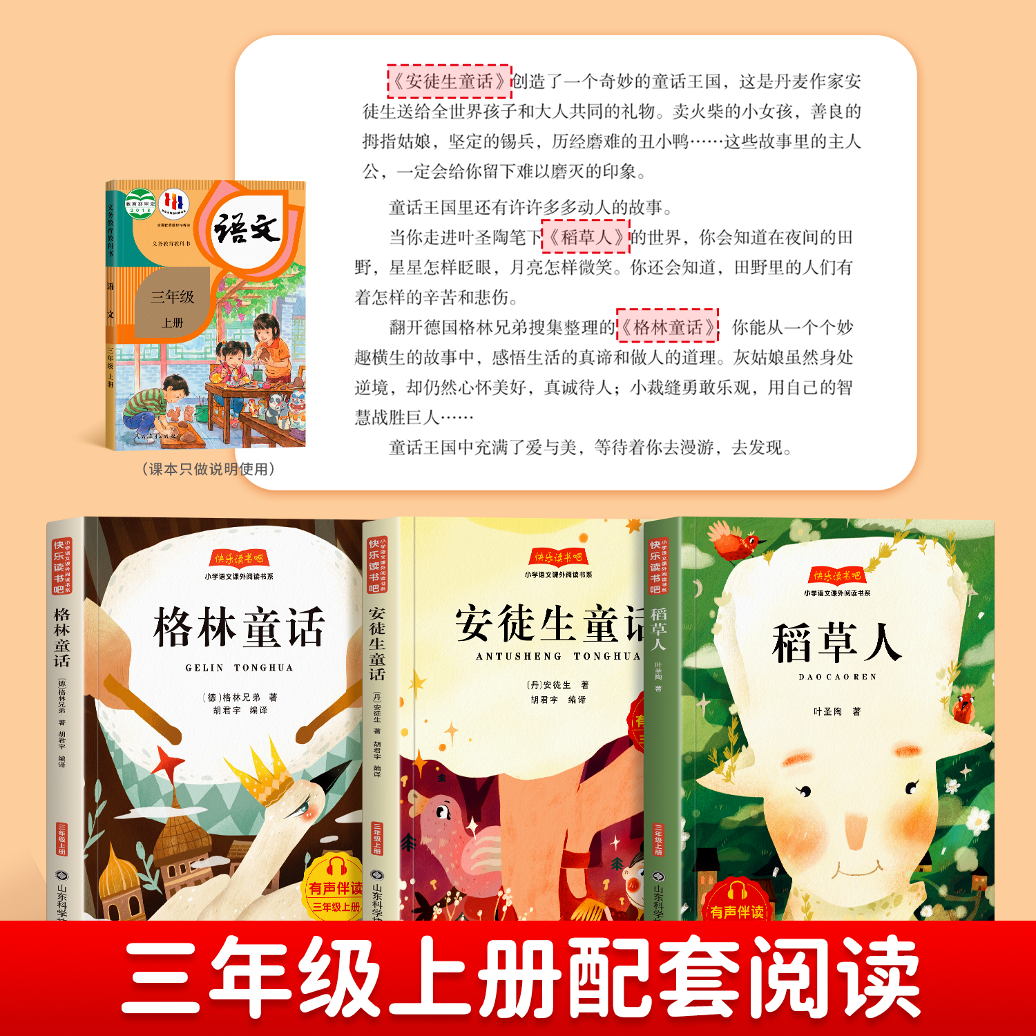 稻草人三年级上册阅读全套三本快乐读书吧小学生课外书正版 书目稻草书叶圣陶老师故事导读 3册安徒生童话格林童话全集3上同步人教版