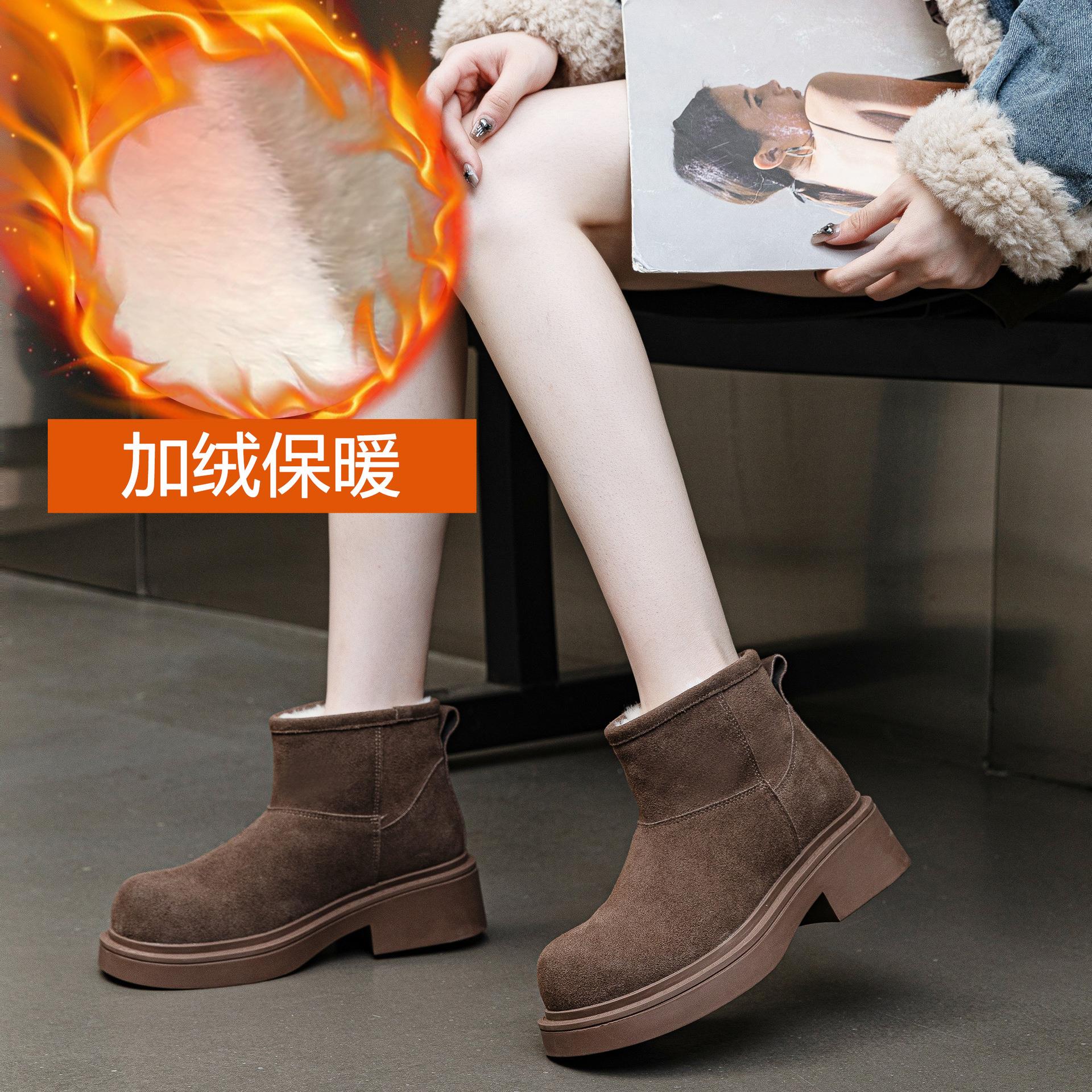 牛皮雪地靴女厚底防滑防水加绒加厚短靴冬季 皮毛一体保暖毛毛棉鞋