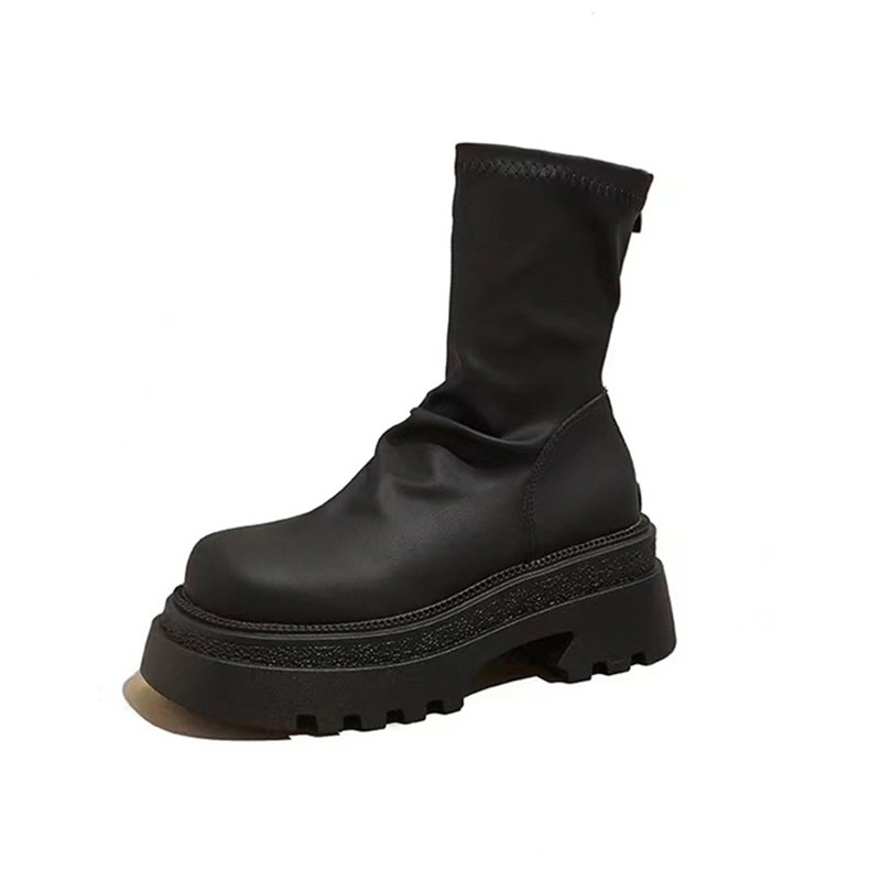 达芙妮厚底马丁靴女款 春秋高跟短靴女瘦瘦靴黑色靴子短靴 2025新款