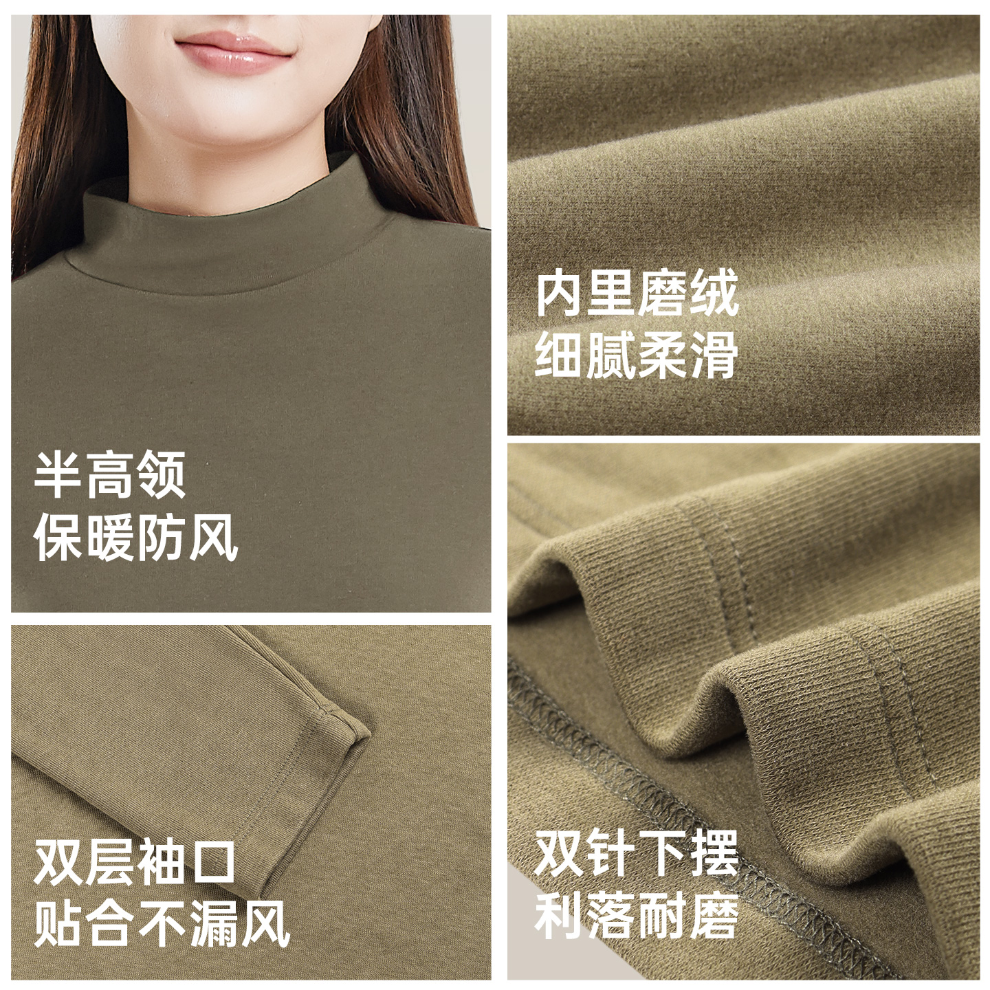简云羊毛蚕丝德绒无痕半高领打底衫 中领秋衣女发热内衣保暖上衣HD