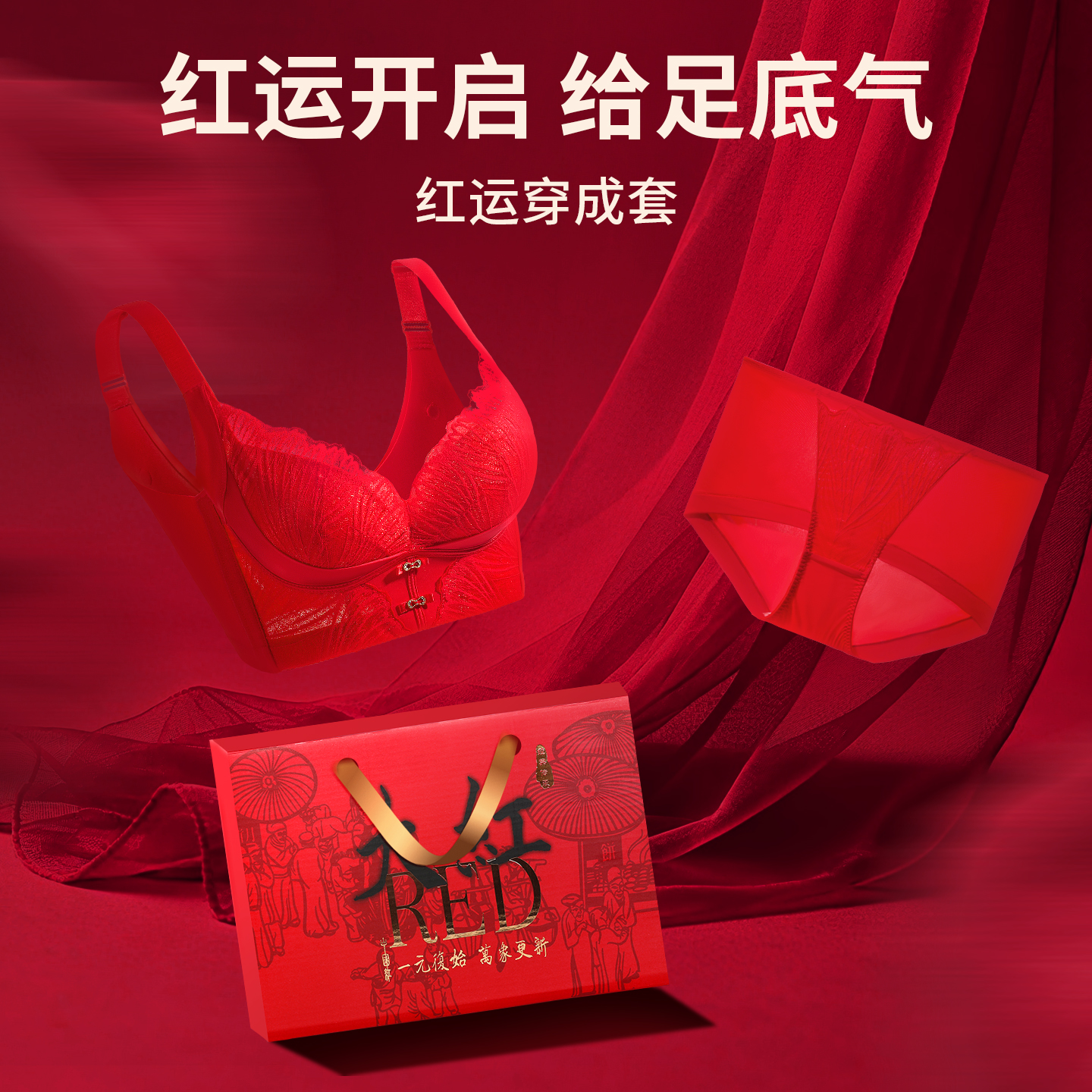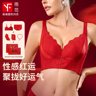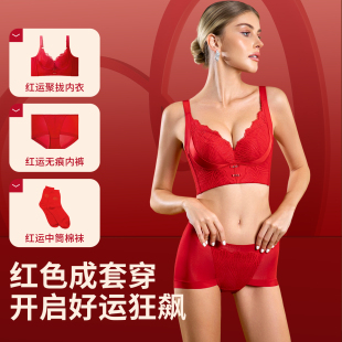 雨范本命年红色内衣套装 袜子性感蕾丝文胸 女小胸聚拢结婚新娘内裤