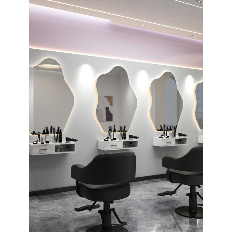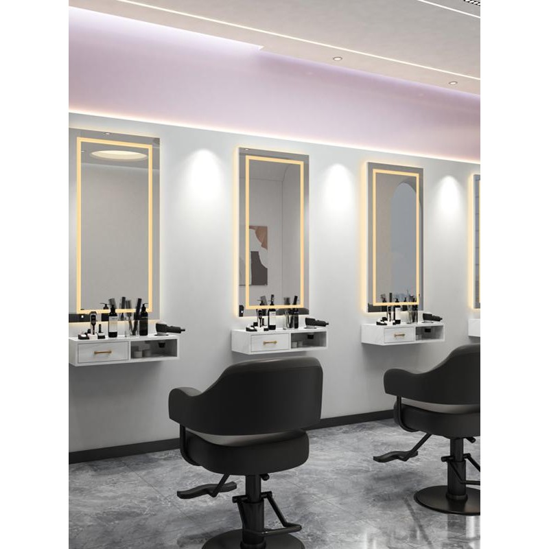 理发店镜台美发店镜子发廊专用LED带灯网红挂墙染烫美容镜子潮款