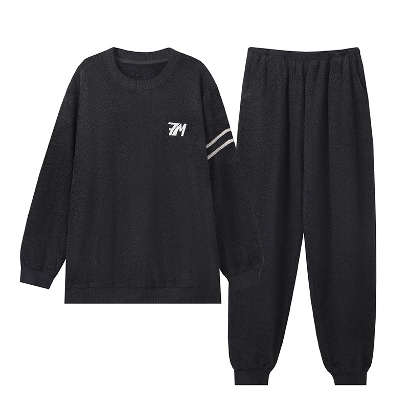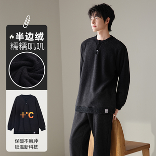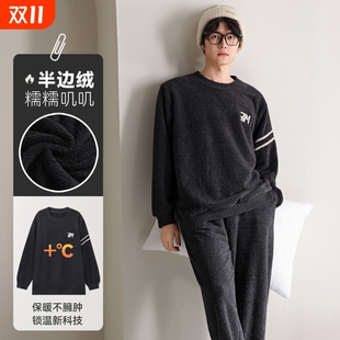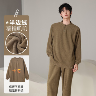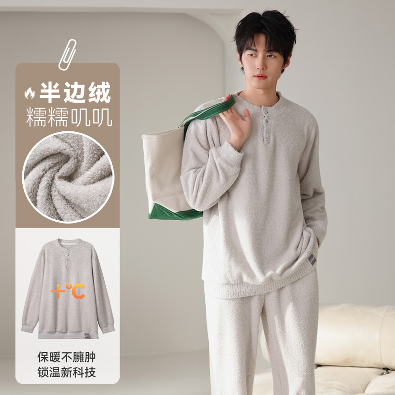 加绒半边绒家居服加厚珊瑚绒秋冬款 冬季 睡衣男款 帕兰朵保暖男士