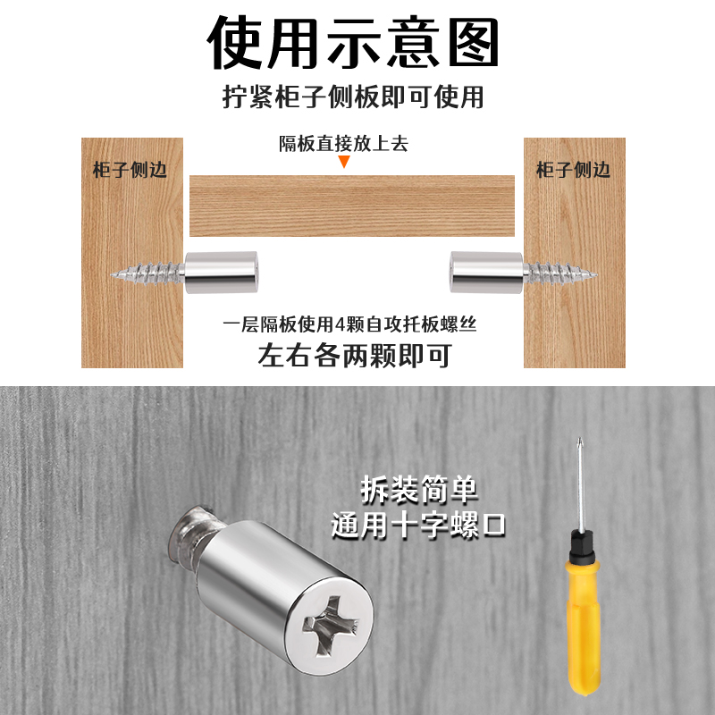 一体自攻螺丝层板托钉橱衣柜固定支撑五金十字螺丝层板托隔板粒托