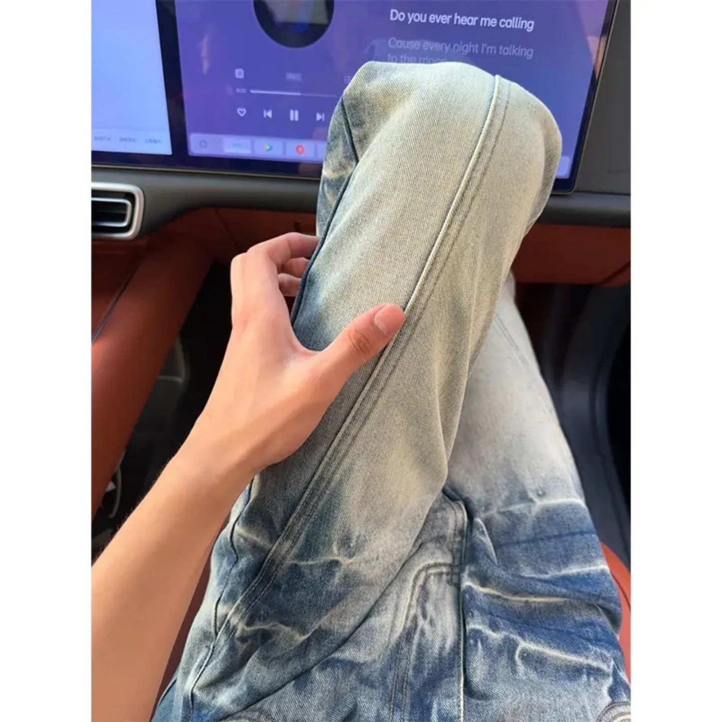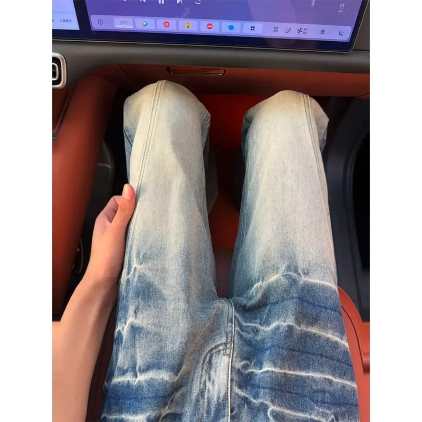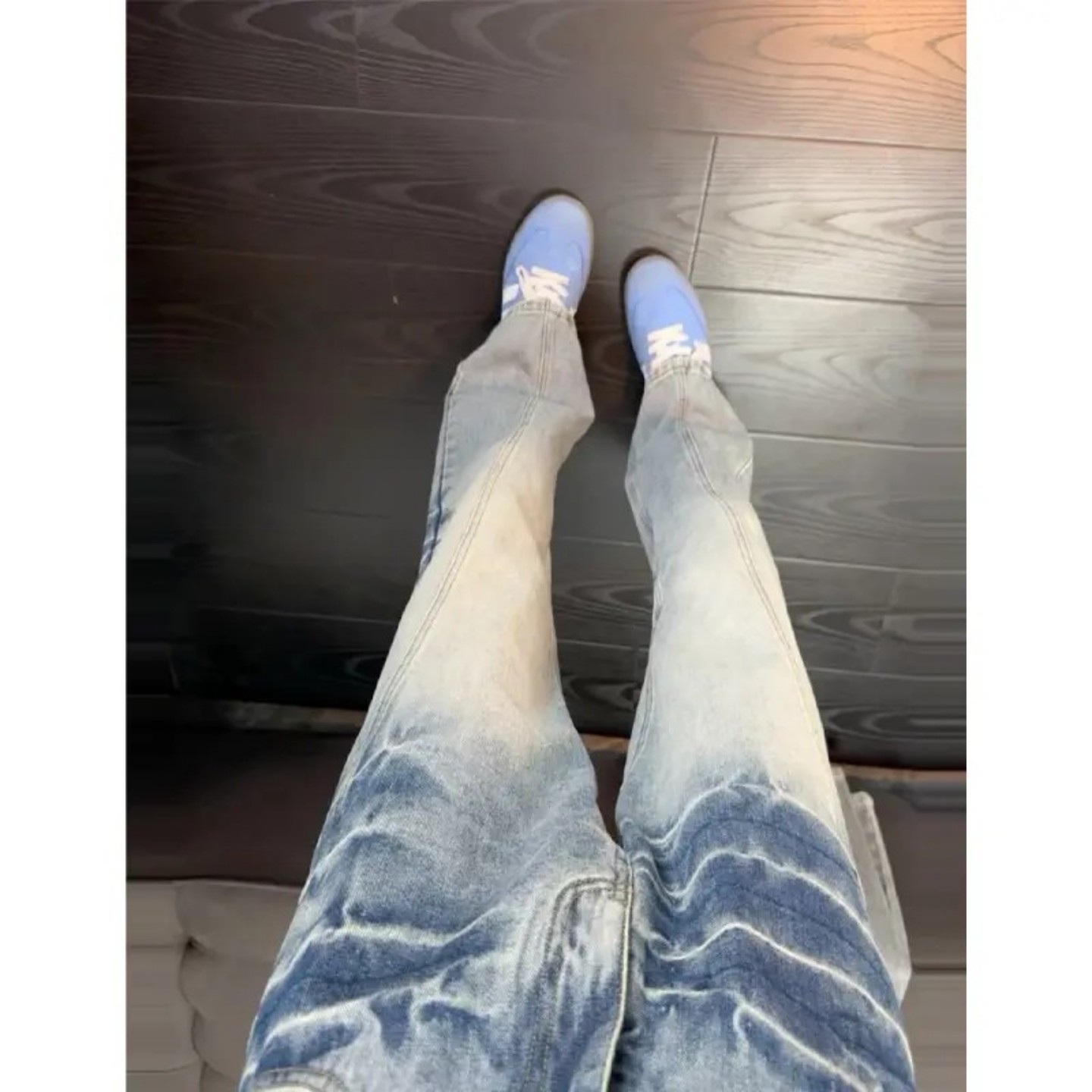 子男款 男生高街vibe潮牌裤 直筒痞帅百搭学生 黑色微喇牛仔裤 美式