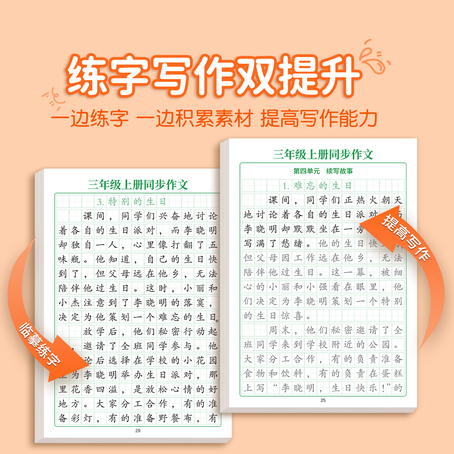 6年级同步作文练字帖小学生专用每日一练三年级四年级五六年级上下册语文同步字帖优美句子积累练习楷书钢笔硬笔书法描红本作文