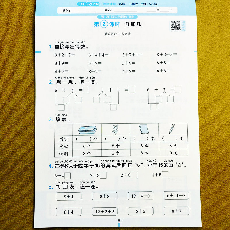 计算看图列式 口算笔算听算速算口算竖式 解决问题思维训练口算应用题思维拓展训练开心 计算一年级上册数学活页计算天天练XS版 西师版