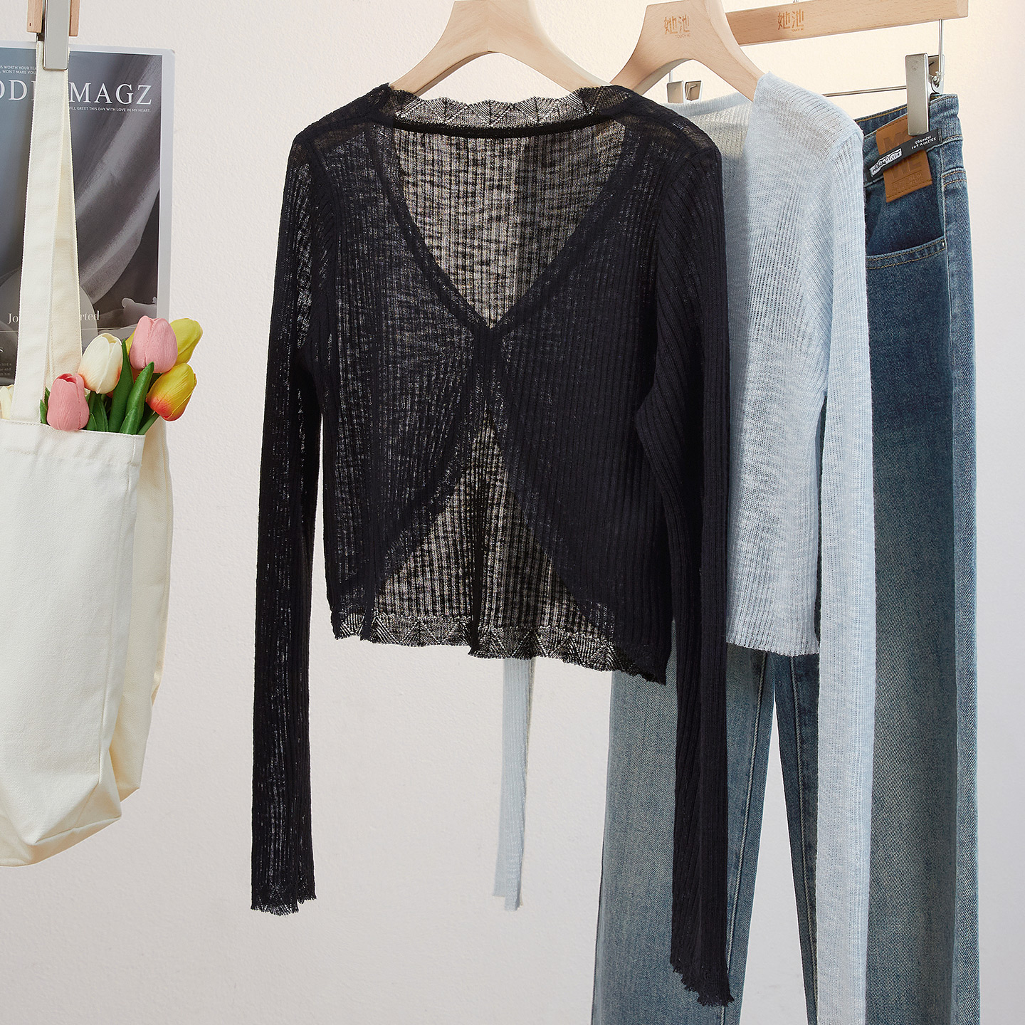新款 2025秋装 女装 通勤简约一粒扣正肩长袖 上衣 她池短款 薄款 针织衫