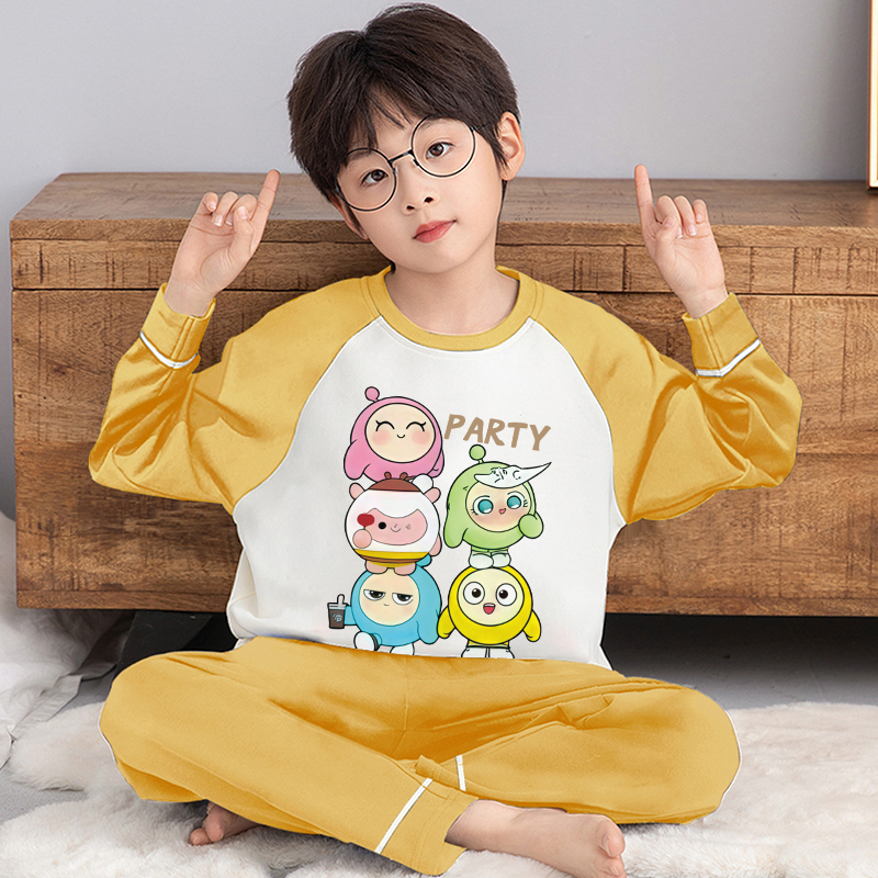 中大童2025新款 儿童纯棉睡衣男孩宝宝秋装 套装 长袖 家居服 男童秋季