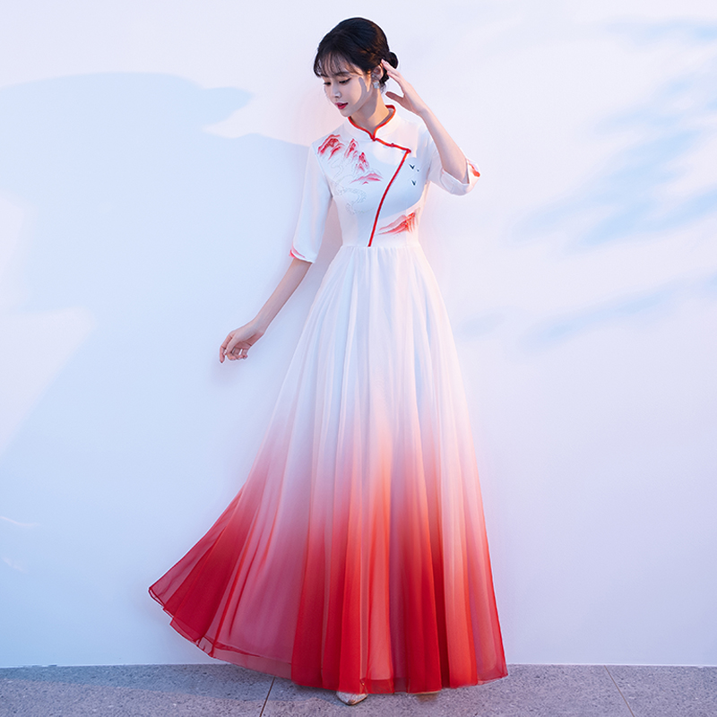 大合唱服演出服女长裙新款 表演服国风比赛礼服 成人合唱团舞台服装