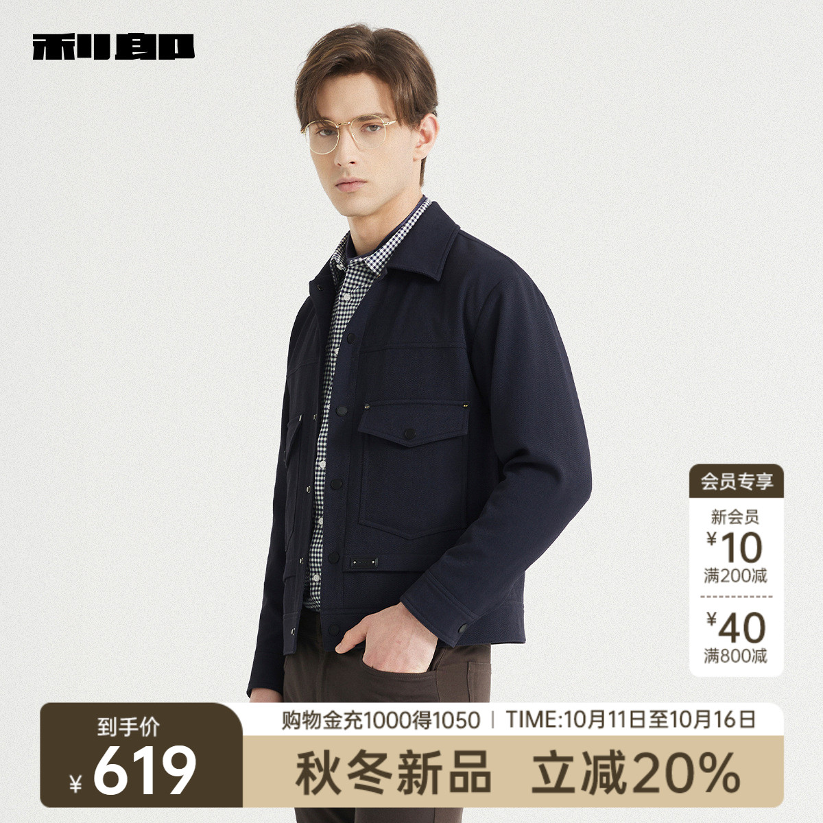 新款 2025秋季 时尚 休闲男装 纯色外套 利郎官方 翻领短款 夹克男士