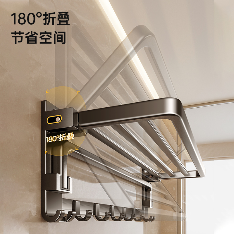 奶油风毛巾架卫生间免打孔浴巾置物架浴室厕所壁挂太空铝挂杆架子