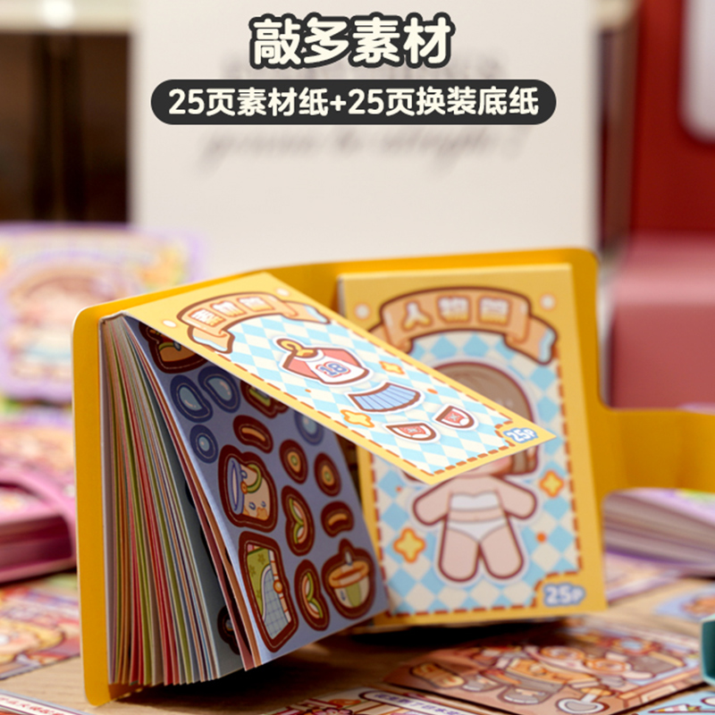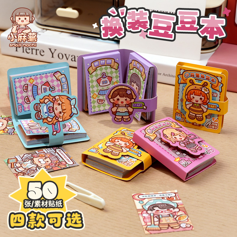 书卡通少女心手工diy摸鱼玩具免裁剪 饰小图案高颜值换装 小麻薯换装 本可爱素材贴纸贴画迷你豆豆本女孩儿童装