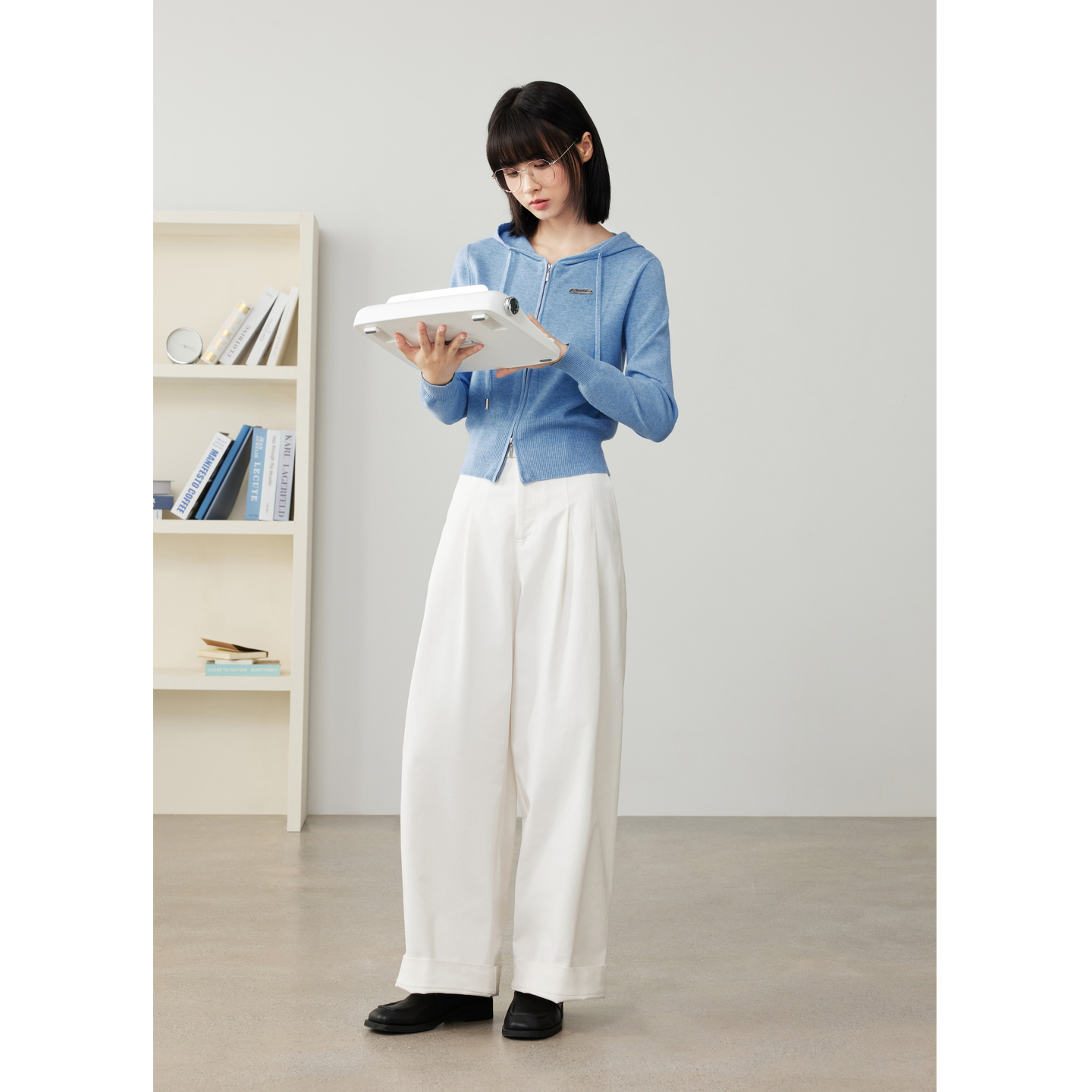女2025年秋季 宽松休闲裤 新款 脚卷边时尚 韩系裤 紫涵简约直筒阔腿裤