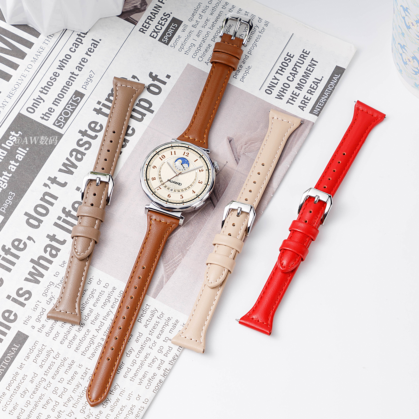 gt3高级感替换带 watch5系列小蛮腰真皮女腕表GT5pro夏天watch4pro运动41mm女款 适用华为gt5 6手表gt4表带新款