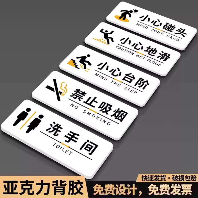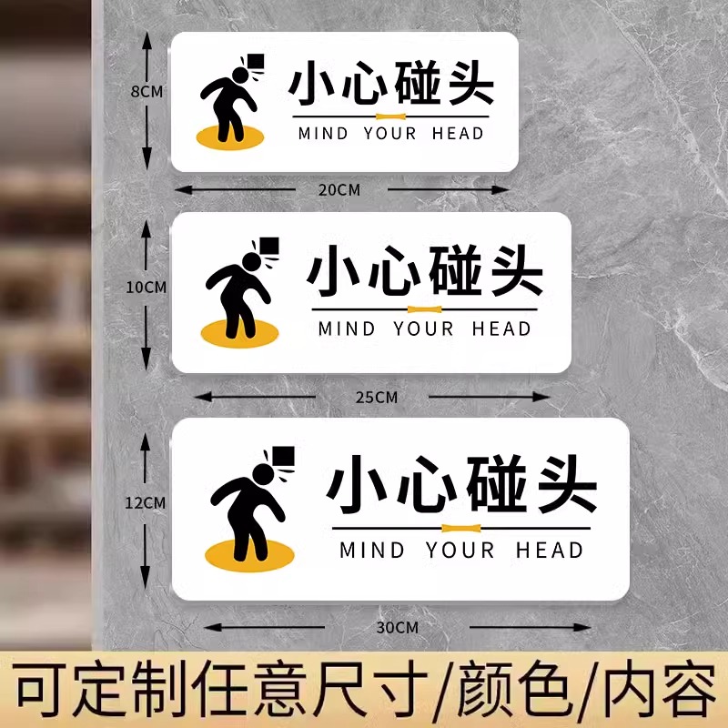 夜光亚克力温馨提示小心台阶指示贴防撞标志牌小心碰头提示牌当心注意防止碰头标识小心地滑标识牌警示牌定制