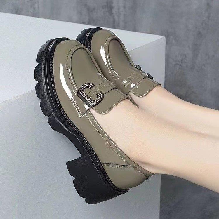 女2025秋季 软皮软底英伦风单鞋 新款 粗跟亮皮小皮鞋 女鞋 厚底乐福鞋
