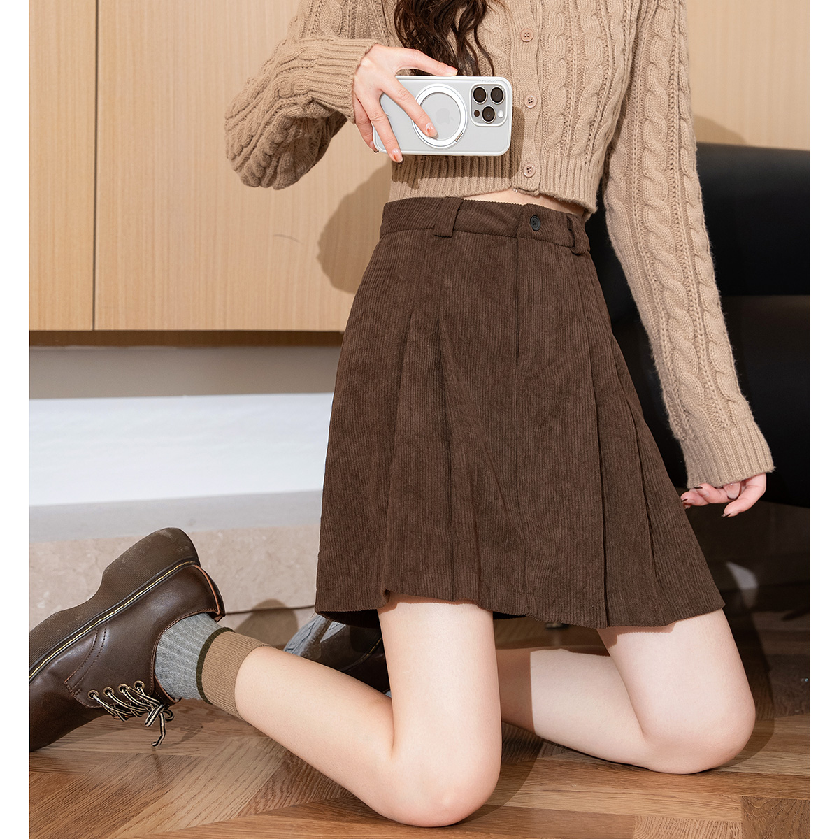 唐狮2025年秋冬季 女半身裙流行美拉德色高腰显瘦灯芯绒短裙X1 新款