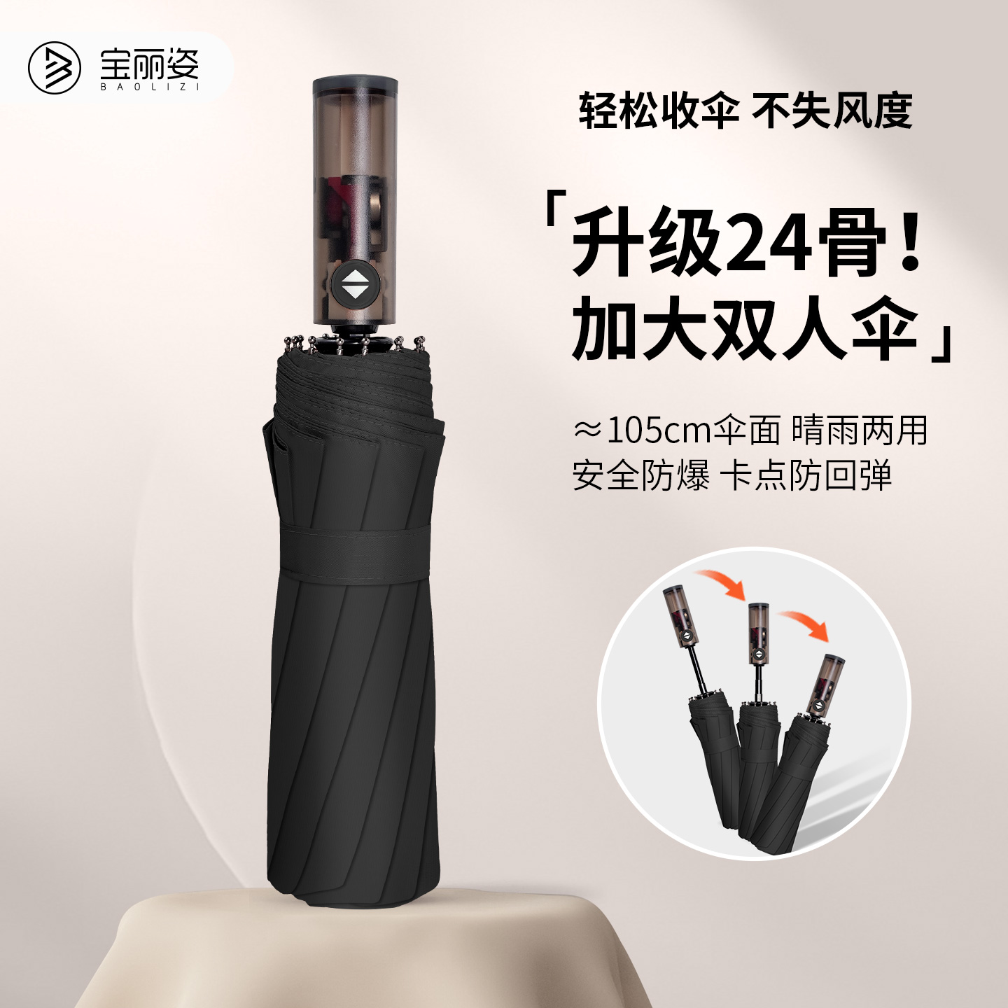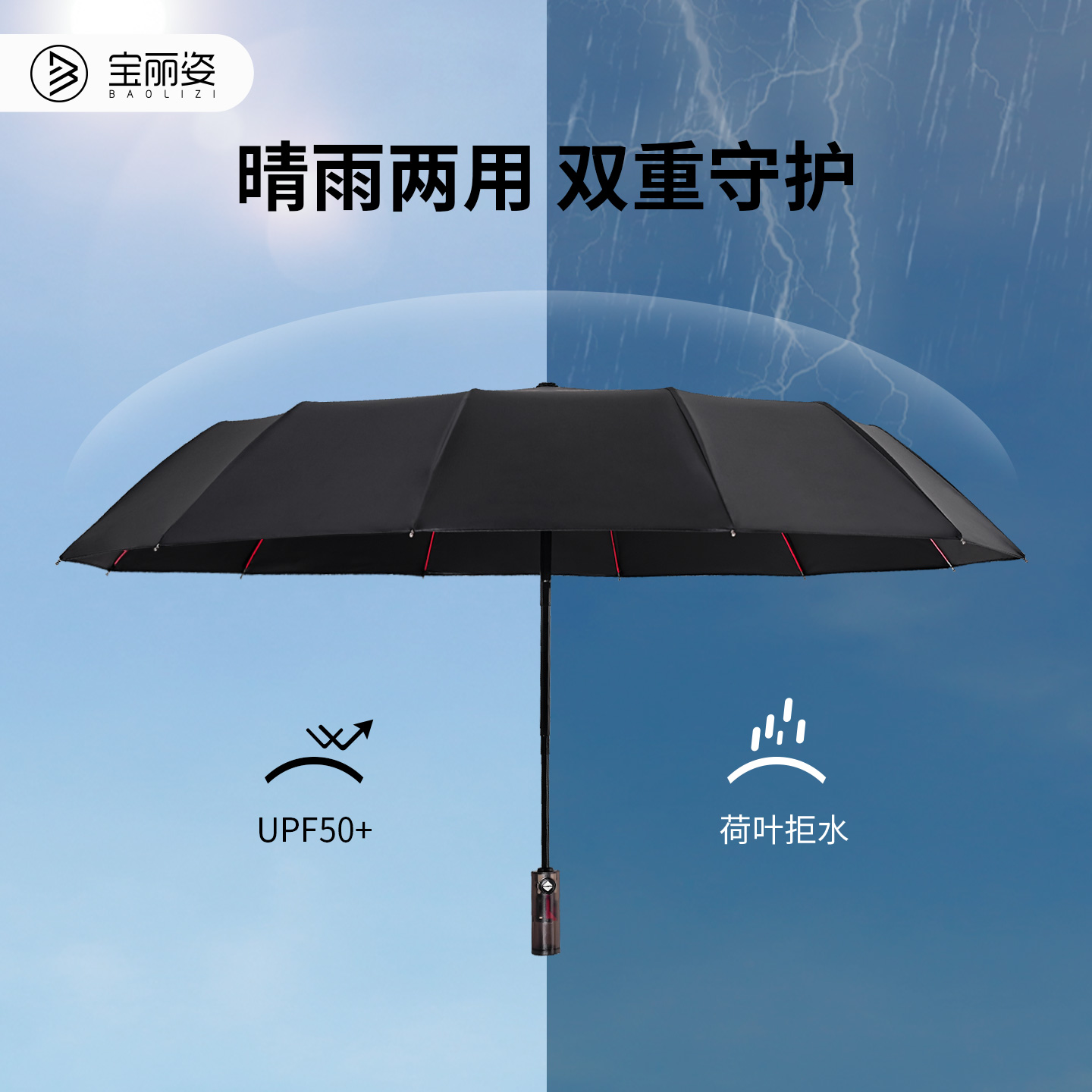 雨宝全自动雨伞男士 加大加厚加固双人男生大号暴雨专用女折叠遮阳