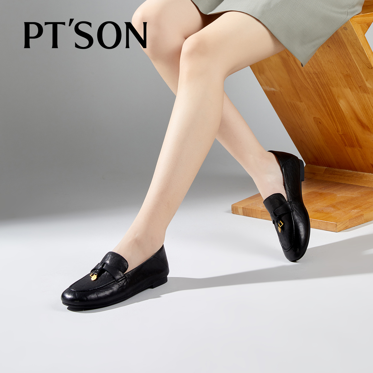 平底超软羊皮不累脚单鞋 新款 通勤百搭 女2025秋季 百田森简约乐福鞋