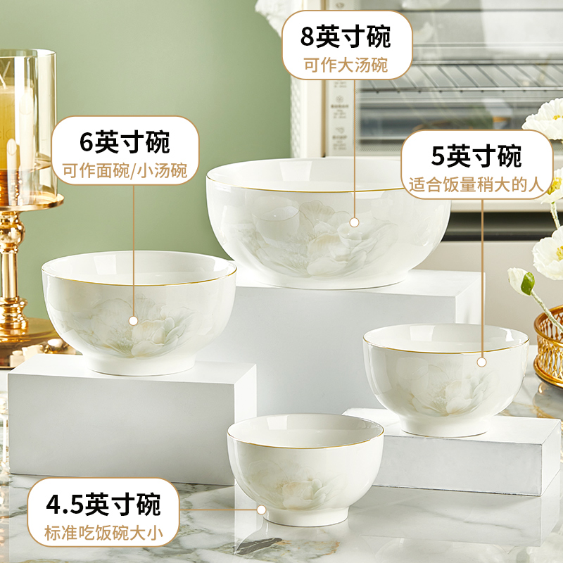 纯白骨瓷碗家用饭碗米饭碗小汤碗大号面碗陶瓷大碗高脚碗