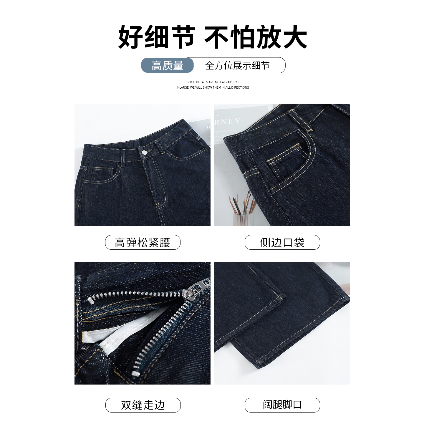 阔腿裤 牛仔裤 丹宁蓝高腰直筒宽松显瘦复古美式 秋冬款 子 女2025新款