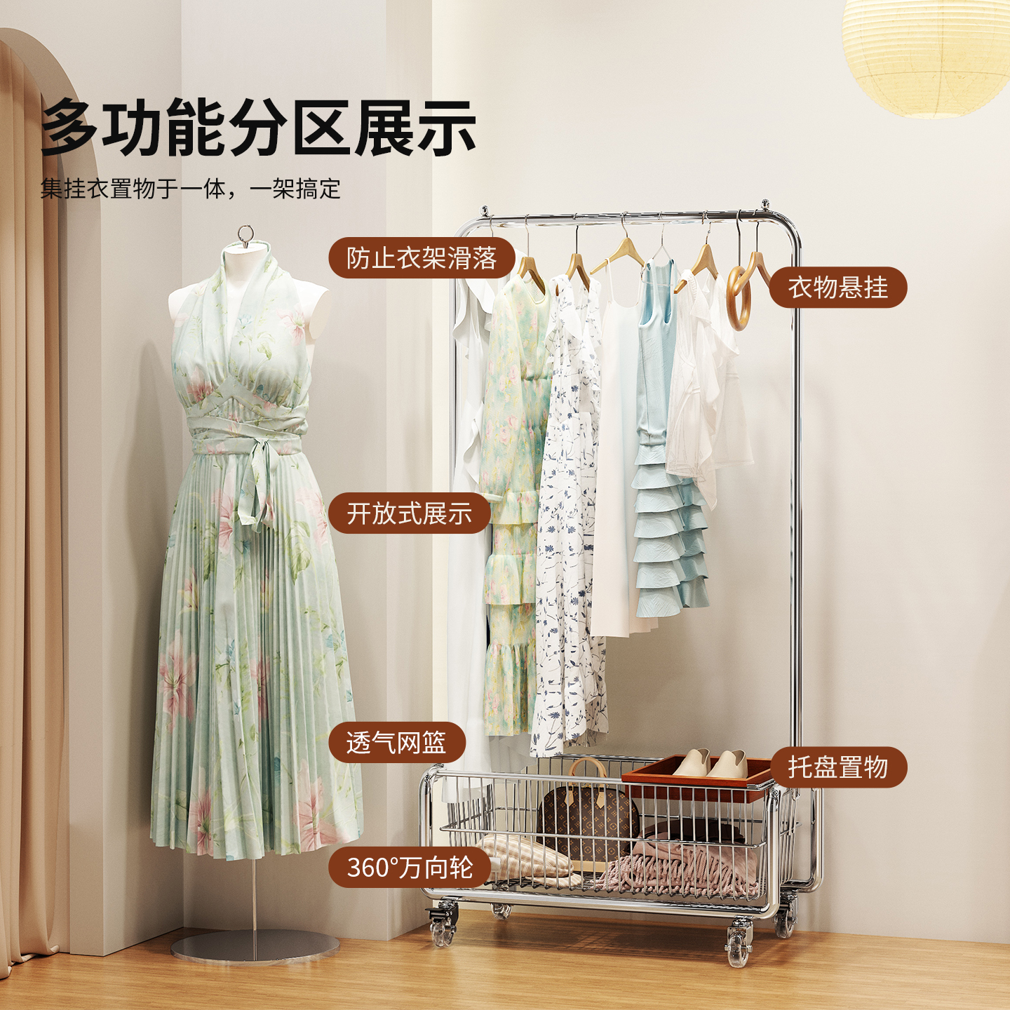 专用移动陈列货架 店展示架男女服装 不锈钢落地式 高颜值挂衣架服装