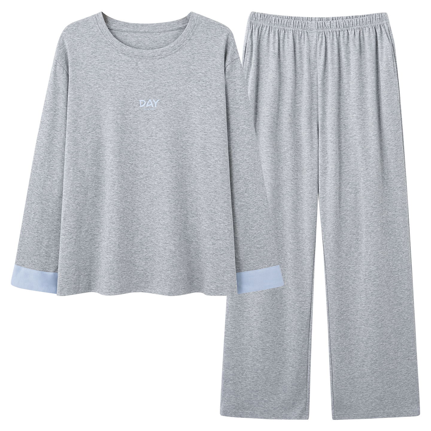 简约可外穿家居服套装 2025新款 长袖 猫人女士纯棉睡衣带胸垫春秋款