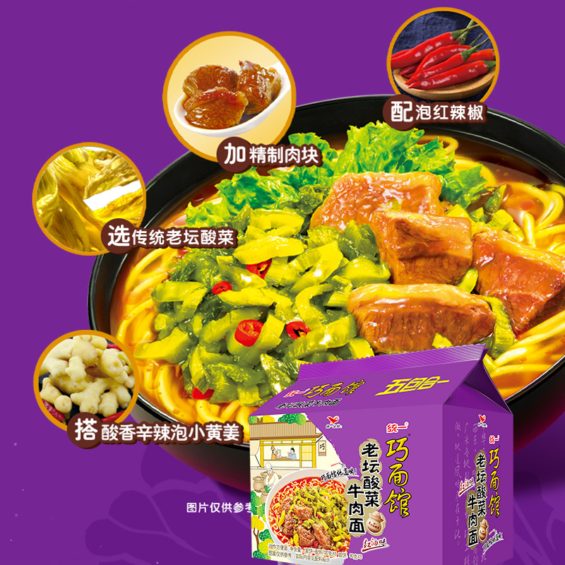 统一巧面馆方便面10包袋装 老坛酸菜泡椒藤椒牛肉红烧牛肉泡面速食