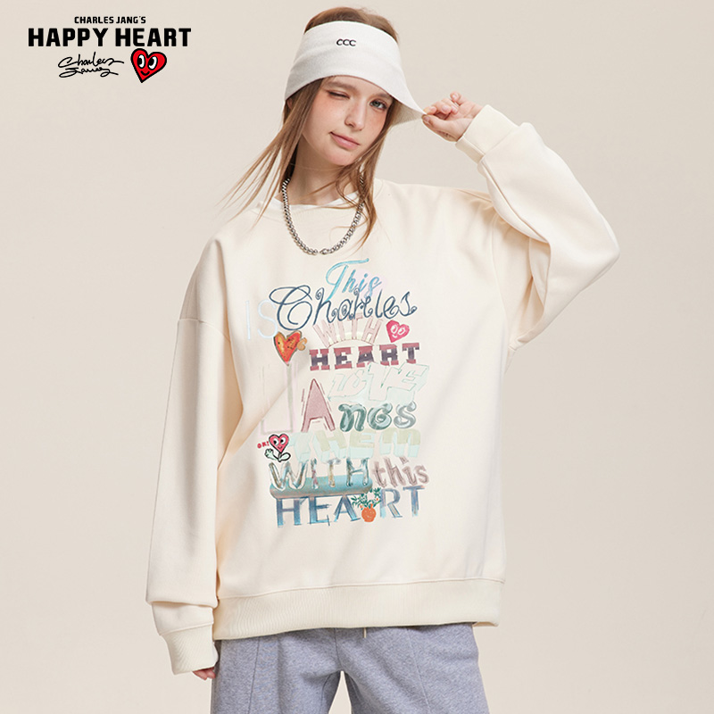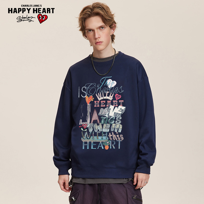 圆领卫衣男女春秋季 落肩袖 宽松童趣蜡笔画印花 美式 查尔斯桃心