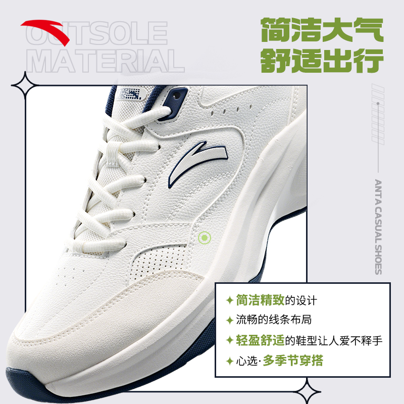 秋季 新款 官方正品 安踏男鞋 休闲跑步鞋 男款 黑色皮面男士 子男 运动鞋