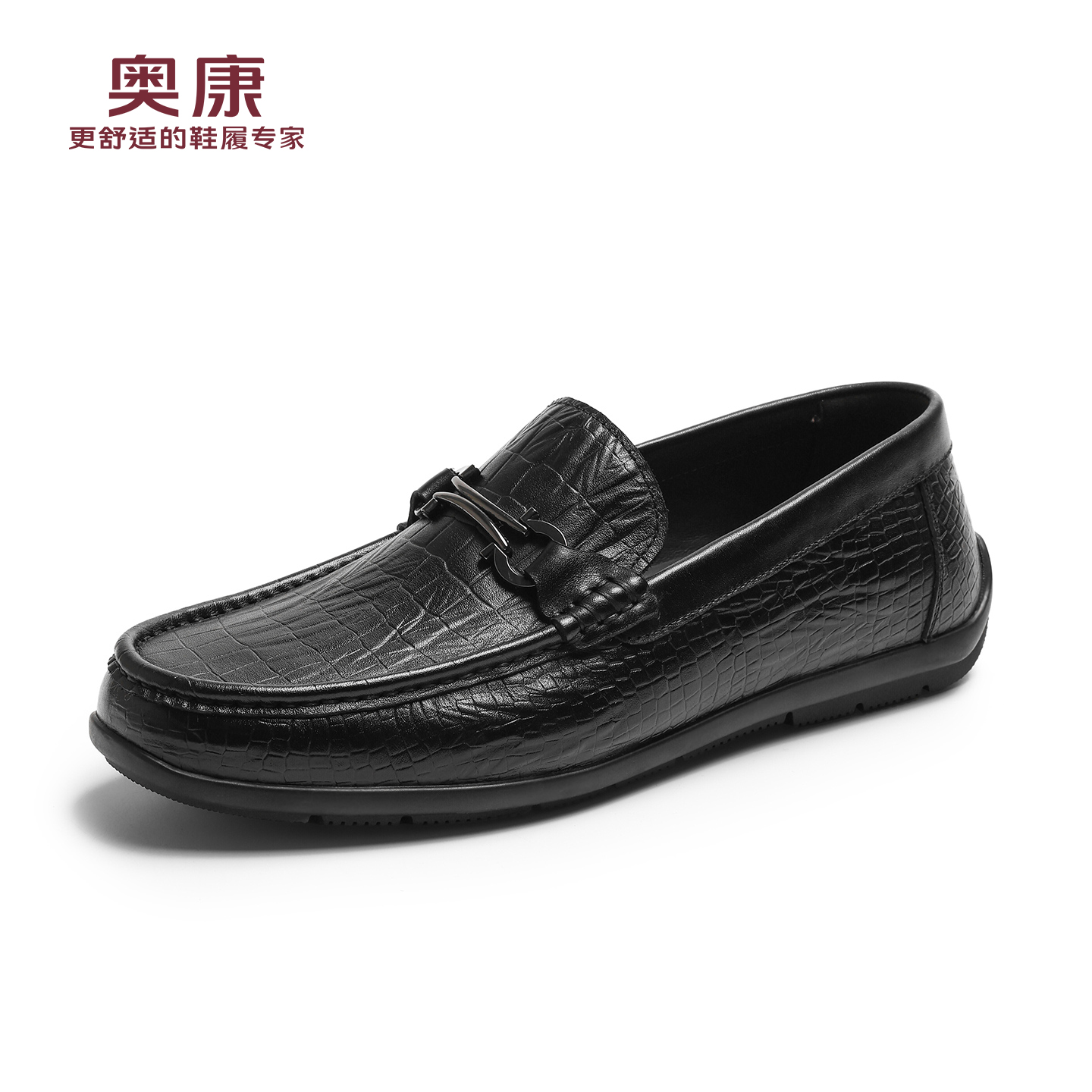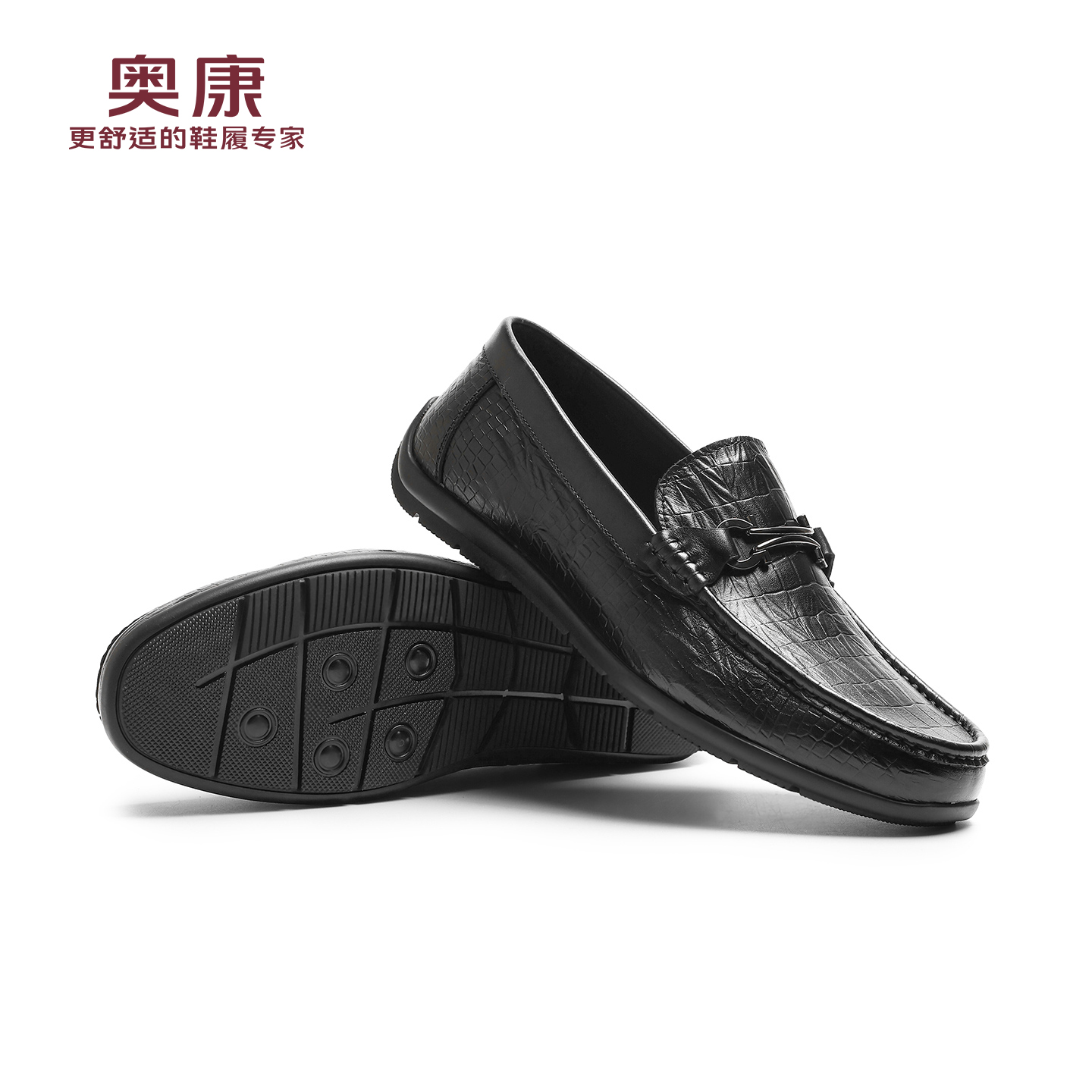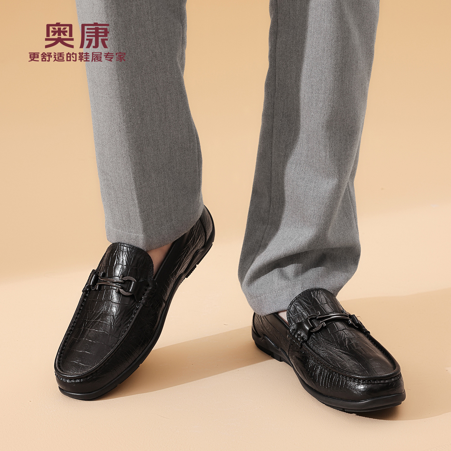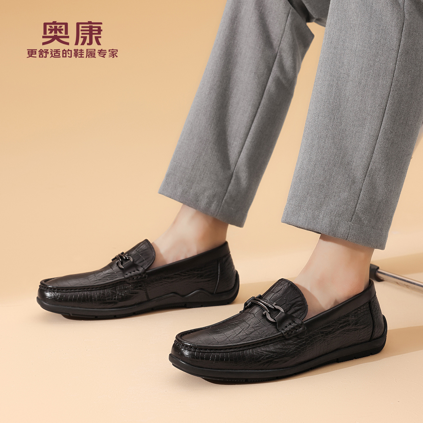新款 2025秋季 真皮商务休闲豆豆鞋 男士 奥康 一脚蹬舒适乐福鞋 男鞋