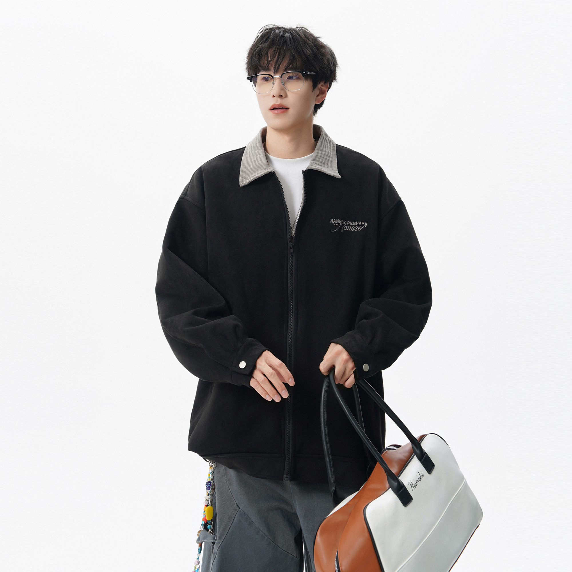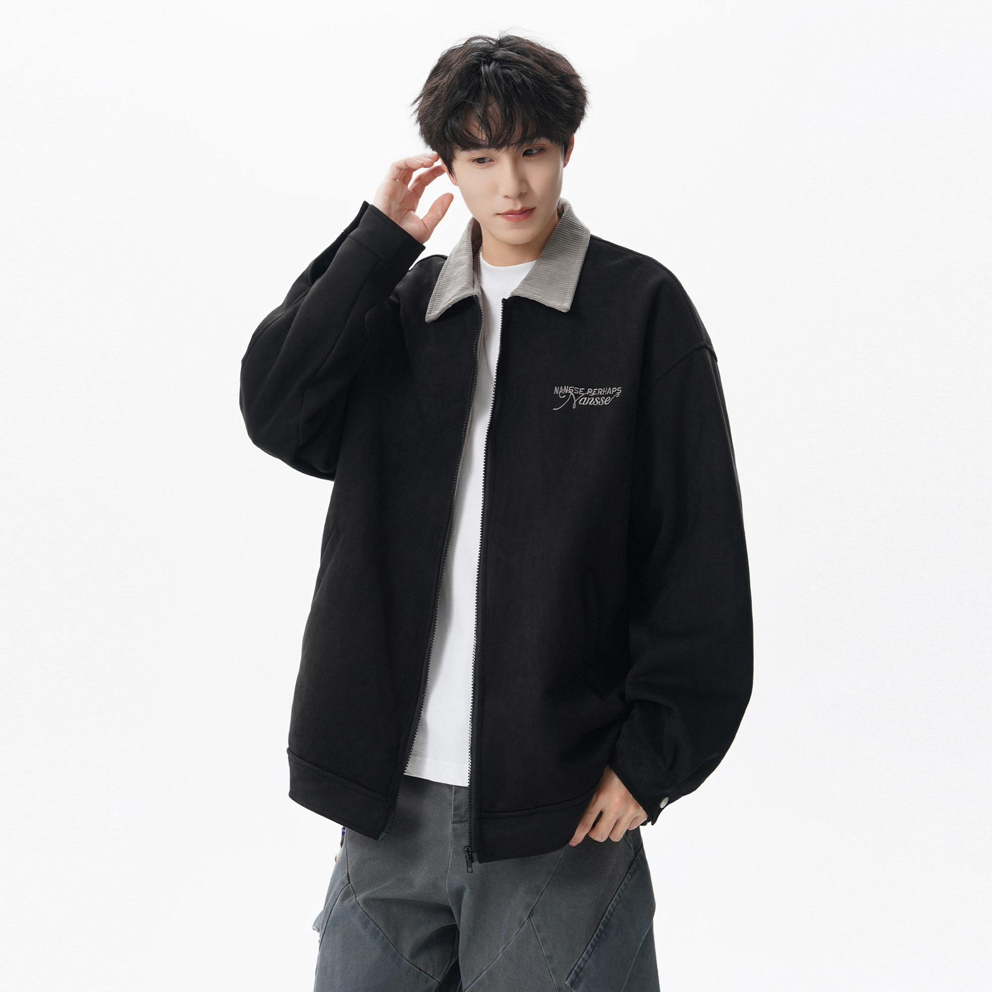夹克外套女美拉德穿搭 型咖啡棕色仿麂皮绒短款 Fabrique秋装 宽松版