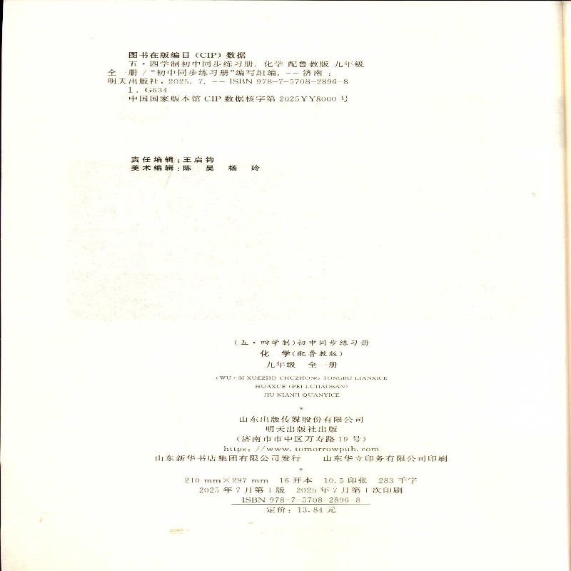 2025五四制9九年级化学全一册上下册初中同步练习册配鲁教版 社 明天出版