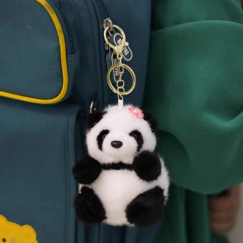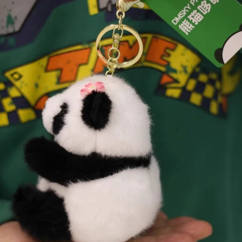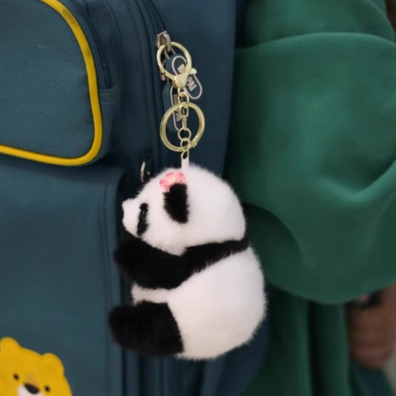 熊猫花花钥匙扣仿水貂毛绒玩具公仔包包挂饰玩偶情人节礼物挂件