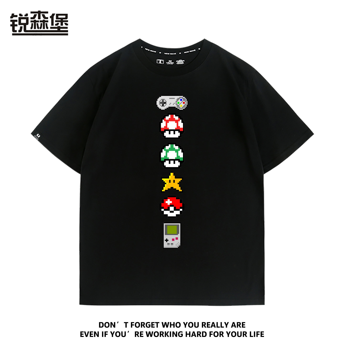 马里奥生命蘑菇像素风任天堂游戏机周边短袖 T恤童趣男百搭 二次元