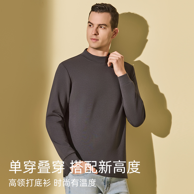 恒源祥秋衣男士 内衣半高领保暖上衣单件内搭莫代尔棉加厚冬打底衫