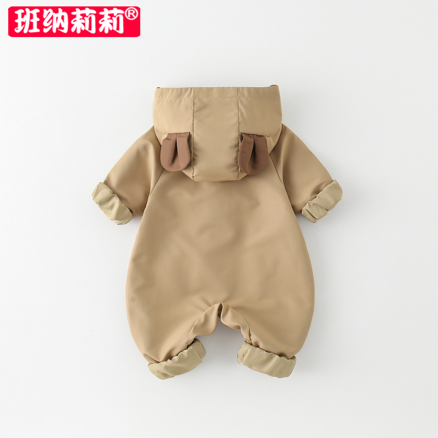 婴儿衣服秋装 外出可爱洋气防风哈衣爬服 男宝宝冲锋衣连帽外套秋季