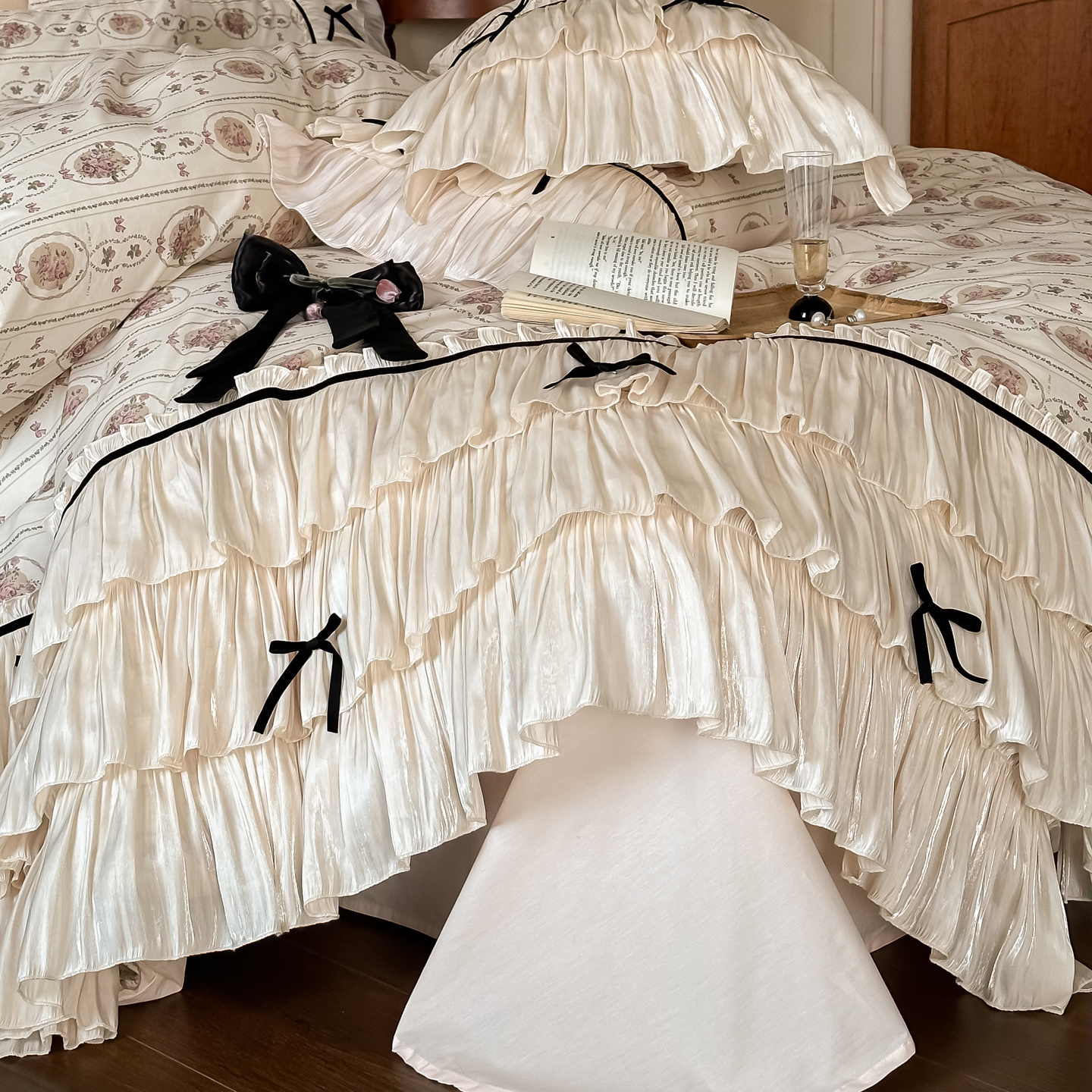 法式 公主风全棉水洗棉双层纱花边四件套纯棉少女心蝴蝶结床上用品